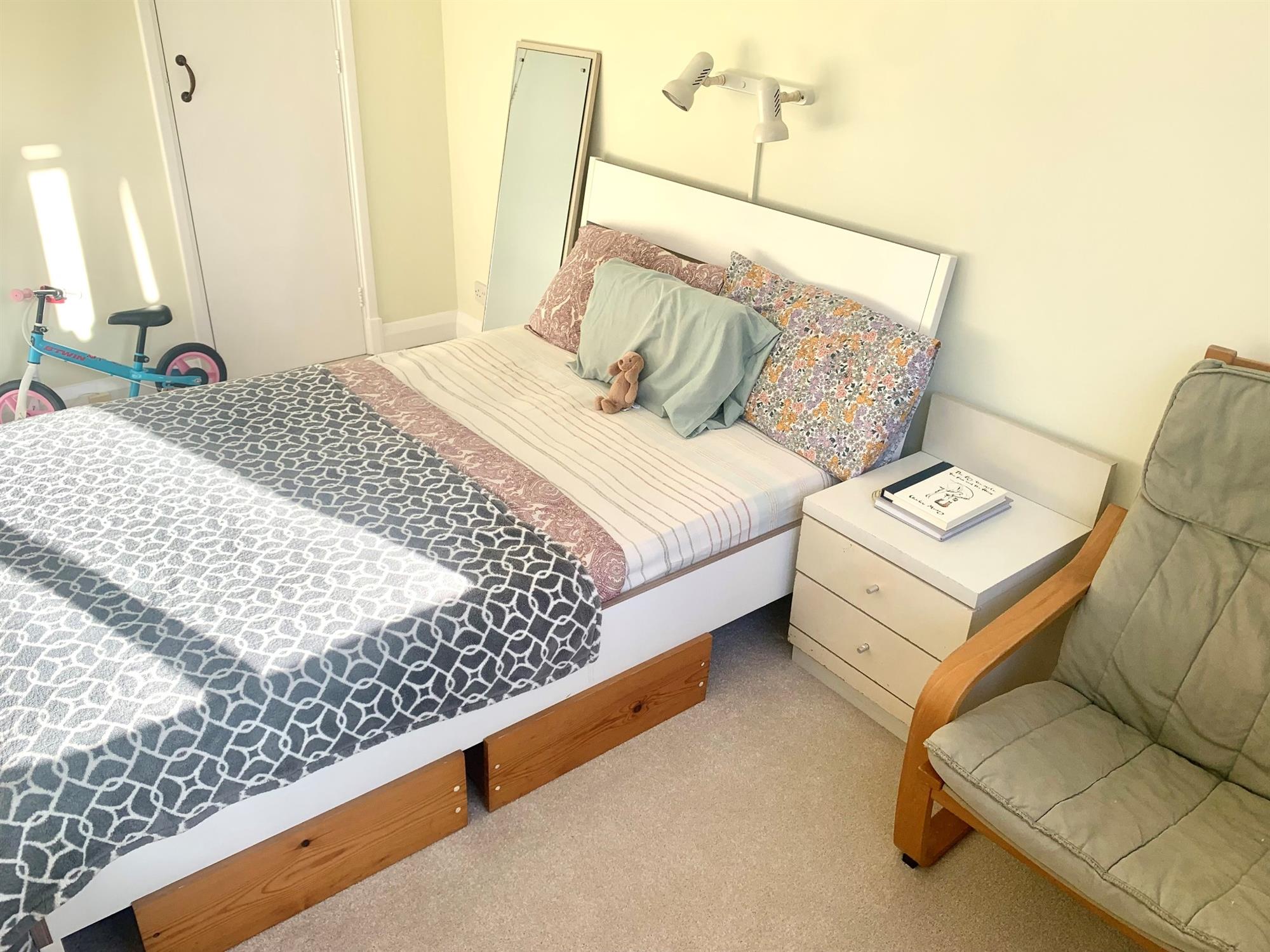 BEDROOM – Double bedroom with window to front with built in wardrobe and carpeted. Furniture consists: Double bed.