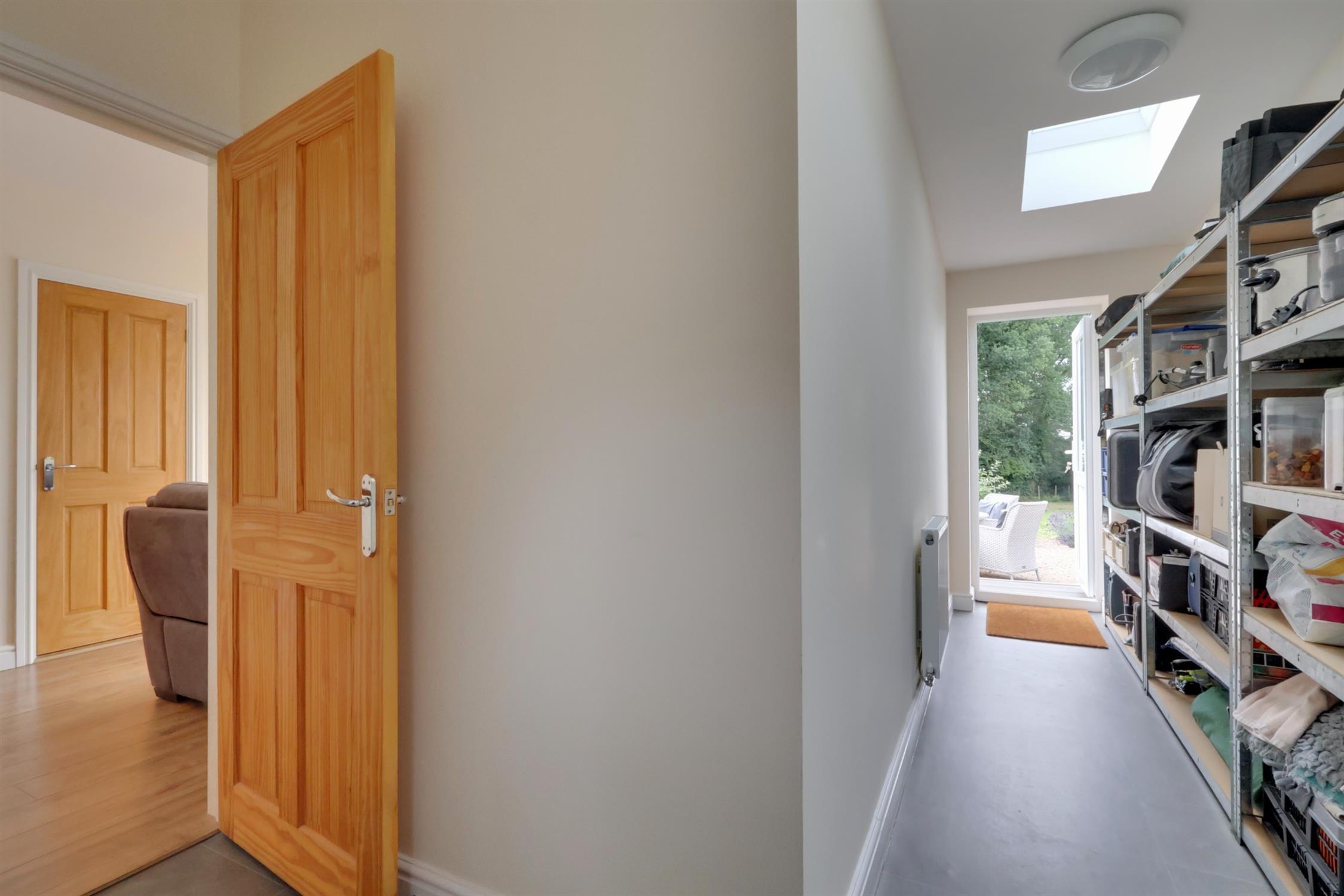 Accessed via double glazed inner front door. Smooth plastered ceiling. Double glazed windows to side aspect. Meter cupboard and additional storage cupboard.
