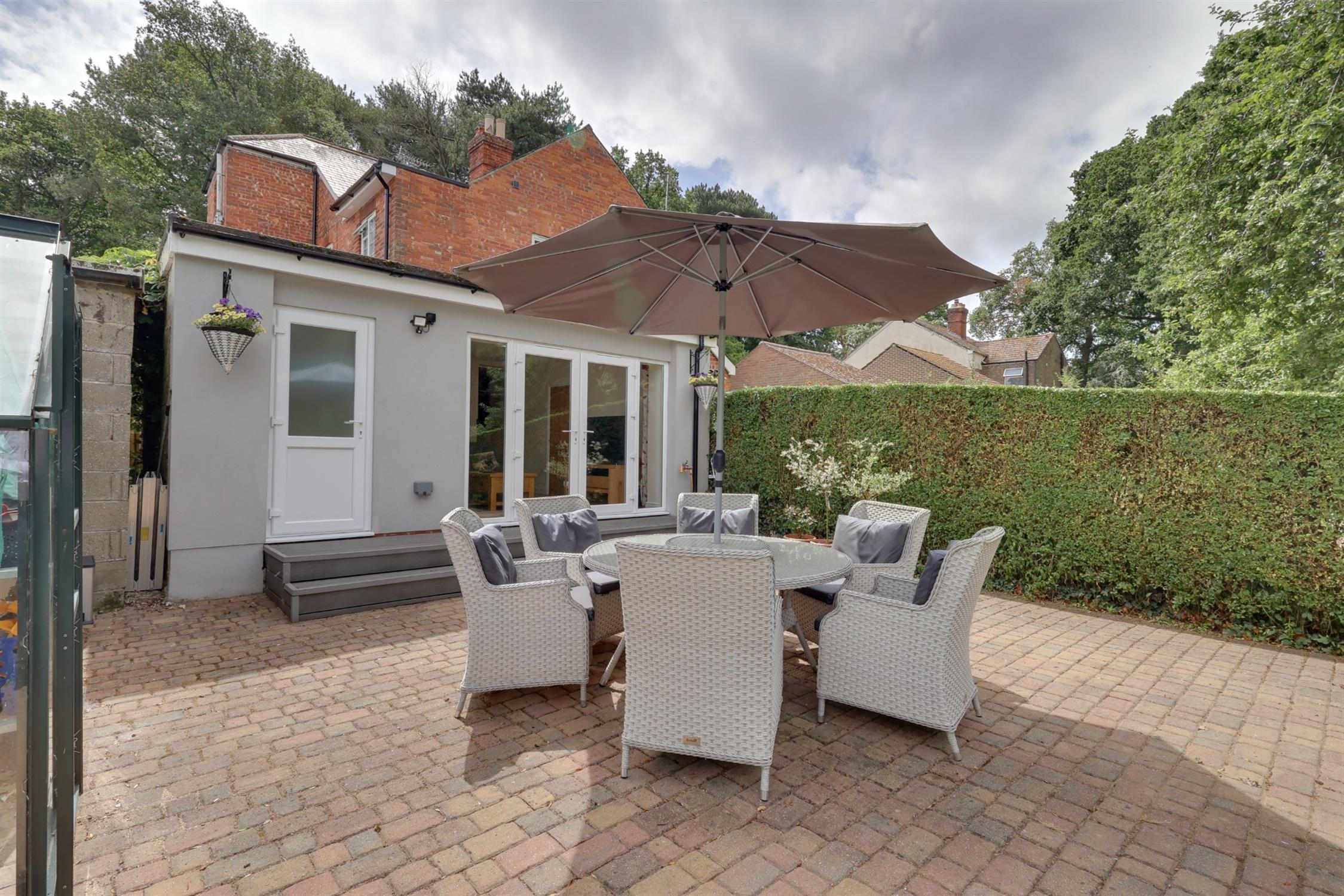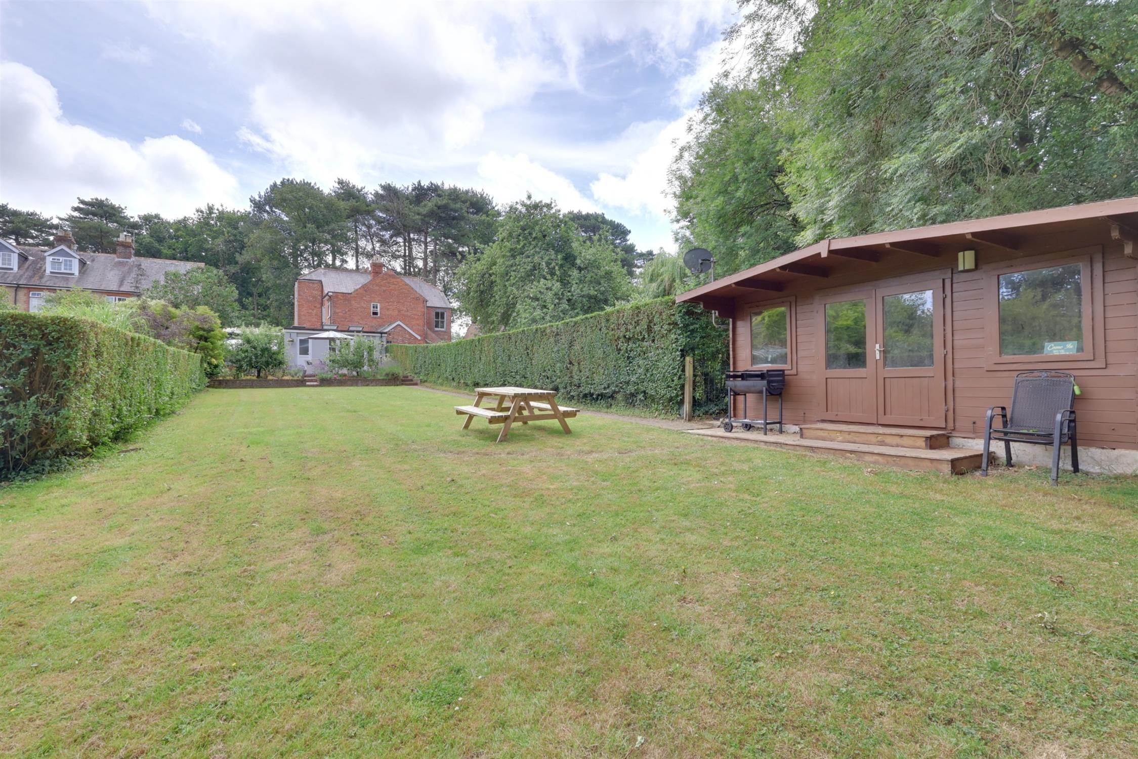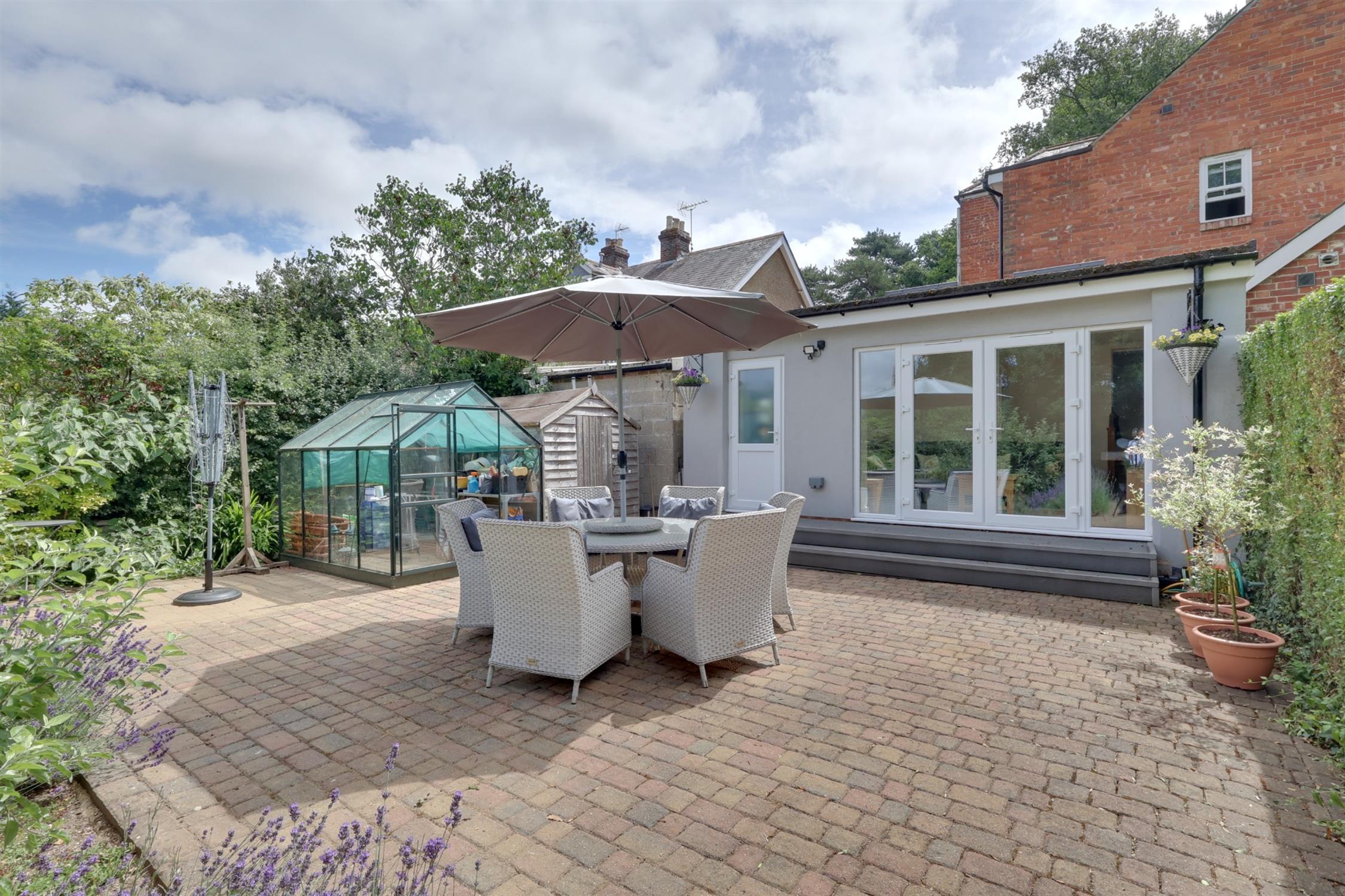 Backing on to wooded area, the spacious garden is mainly laid to lawn with paved pathway down the side. Paved patio area with summer house, greenhouse and storage shed.