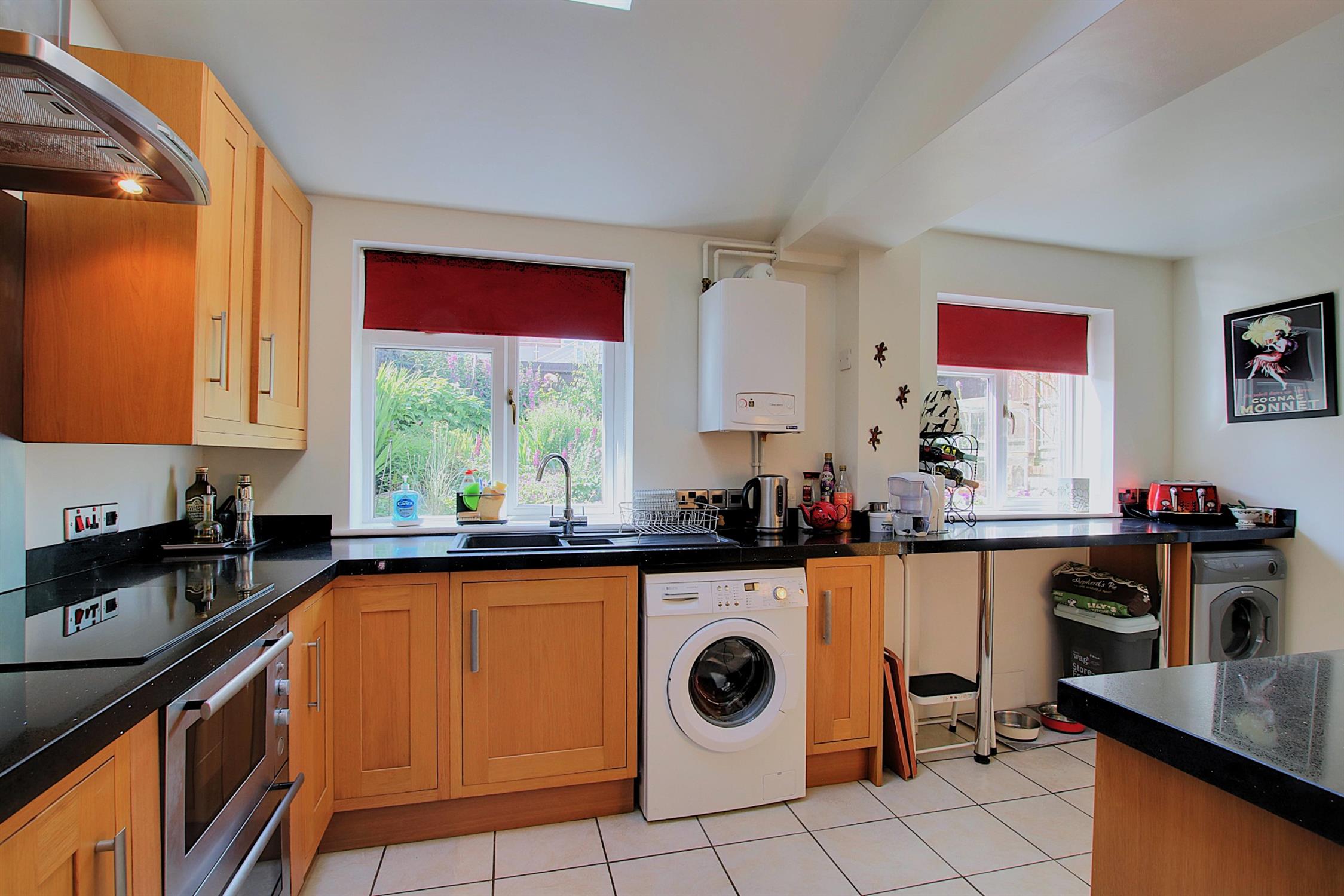 On the ground floor is an entrance hall with stairs to the first floor and a door opening into the sitting room which has a feature fireplace with inset gas fire, useful under stairs storage, and window to the front aspect. An archway opens into the dining room which has double-glazed French doors opening into the rear garden, and a door to the extended kitchen/breakfast room which has an extensive range of stylish wall and base units, integrated electric oven, hob and fridge/freezer, plumbing for washing machine and space for tumble dryer, breakfast bar, wall mounted central heating boiler, and internal door to the garage.