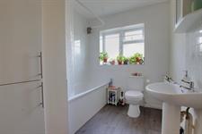 Double glazed obscure window to the rear aspect. Smooth ceiling. Extractor fan. Suite comprising; bath with hand shower and rail. Low level WC. Wash hand basin. Radiator. Part tiled walls. Wood effect flooring. Storage cupboard.