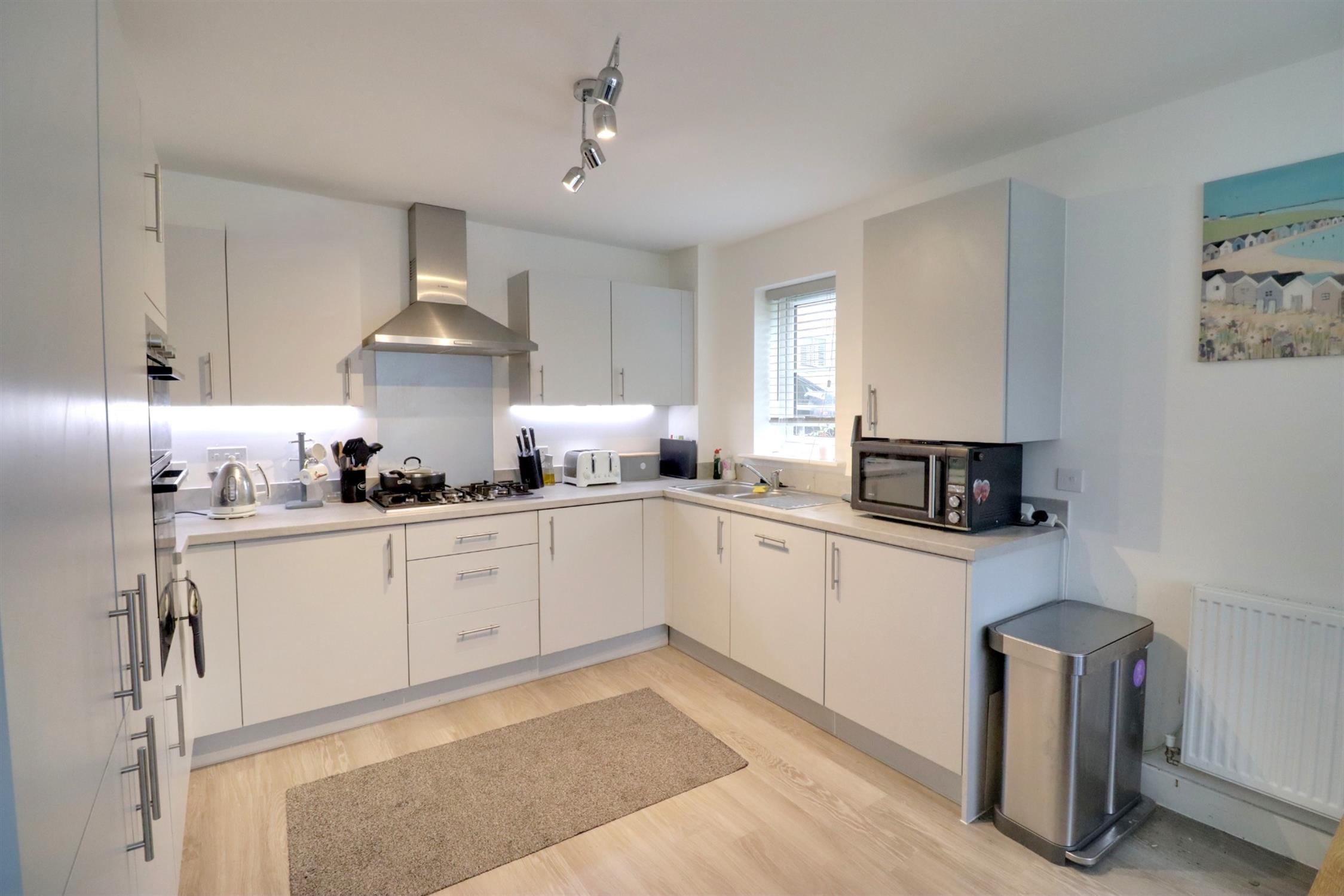 Double glazed windows to front and side, matching range of wall and base units will roll-top worksurfaces, inset stainless steel one-and-a-half bowl single-drainer sink with mixer tap, ‘Bosch’ appliances to include: five-ring gas hob, overhead extractor, fridge/freezer, dishwasher and washing machine, wall mounted ‘Ideal’ combination gas boiler, two radiators, ‘Karndean’ flooring.