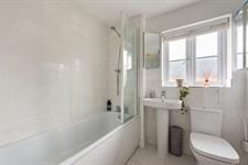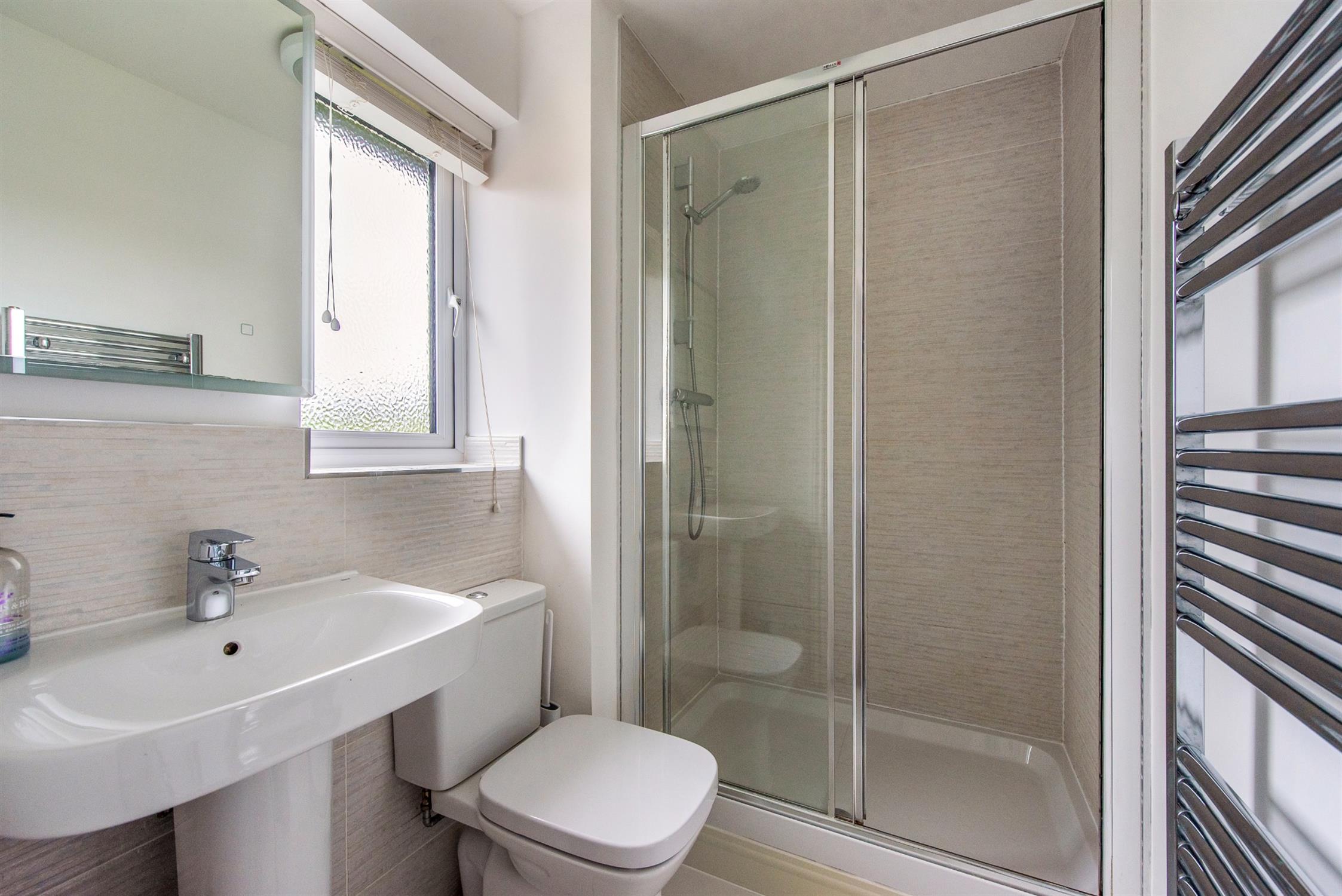 Bright and contemporary, offering bath with shower over and screen, basin, toilet and heated towell rail.