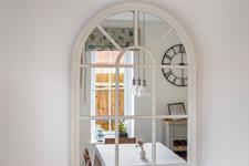 A spacious double aspect reception room, with double doors to the rear garden flanked by floor-to-ceiling windows.
