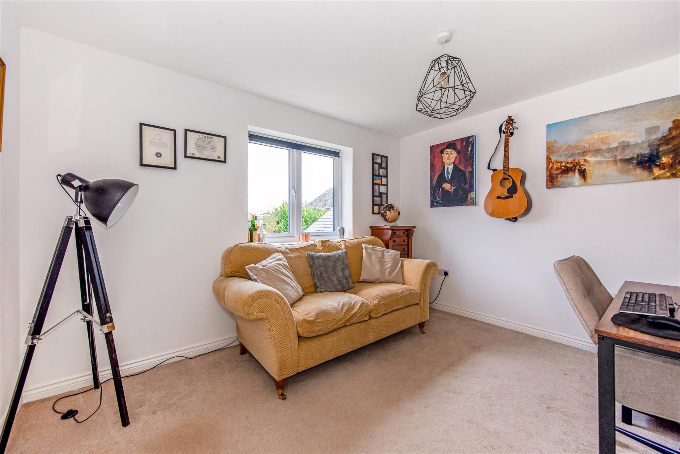 To the front of the property is a neatly tended garden with path to the front covered front door. To the side is a driveway with space for two vehicles, and a single detached garage.