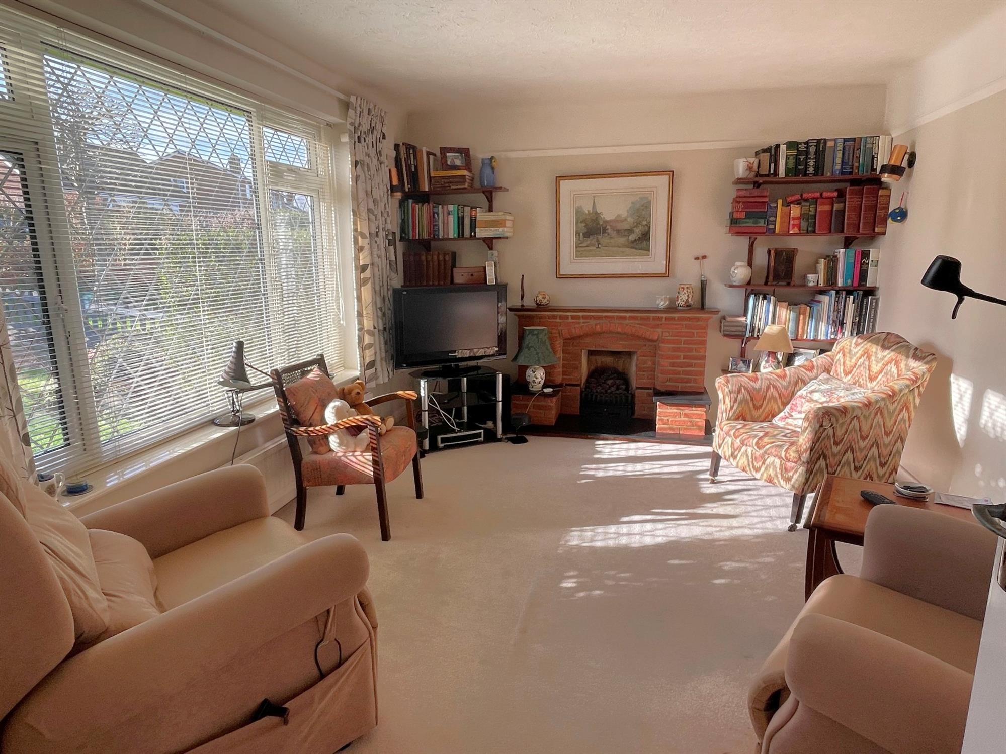 Window to front. Brick fireplace. Television point. Radiator.