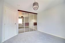 BEDROOM TWO – Good size double. Rear aspect window, curtains, radiator, aerial point, various electrical points, built-in sliding wardrobes, and door to: