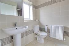 EN-SUITE SHOWER ROOM – Tiled floor and walls, front aspect window, WC, pedestal wash hand basin with mixer tap, shower cubicle and radiator.