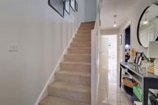 Carpet flooring, smooth walls and ceilings, radiator, power points, stairs to upper and lower floors, uPVC double glazed window to the front elevation, doors to: