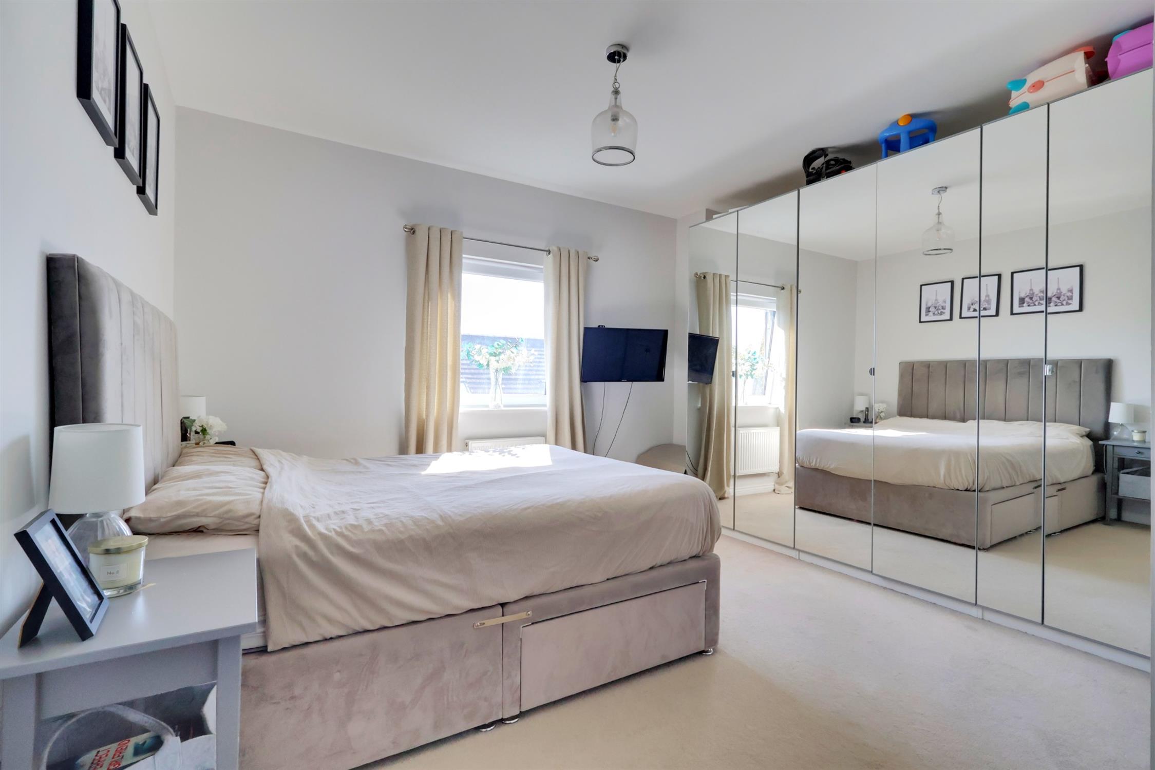 Carpet flooring, smooth walls and ceilings, radiator, power points, fitted mirror fronted wardrobes, access to en suite, uPVC double glazed window to the rear elevation.