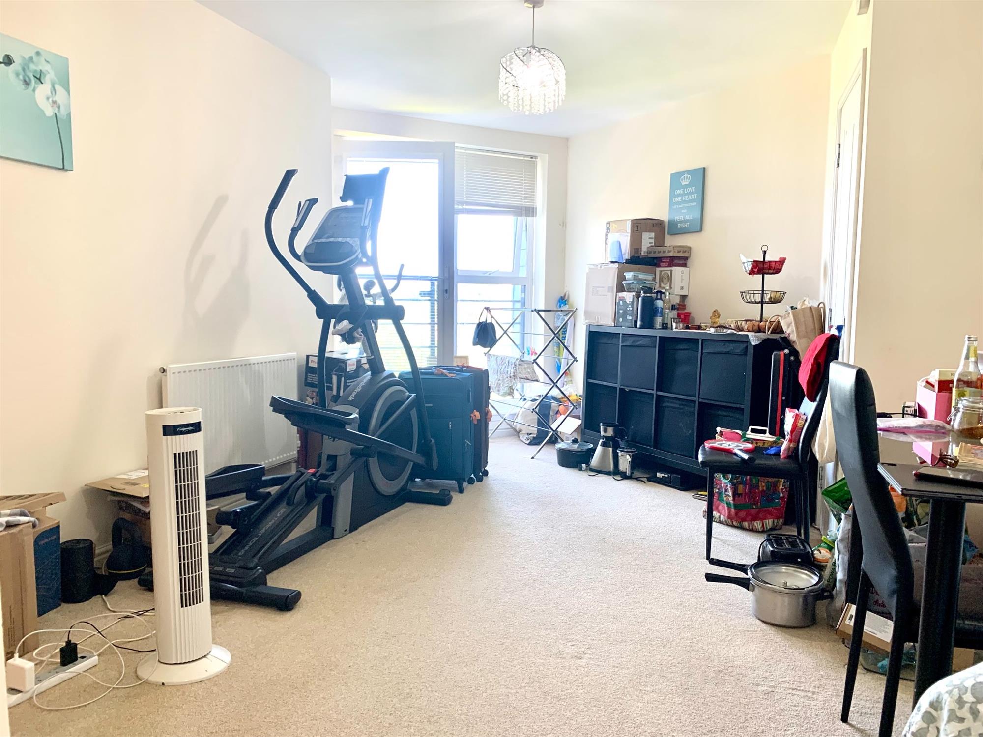LOUNGE – Carpet with door to juliette balcony. Cupboard off housing boiler.