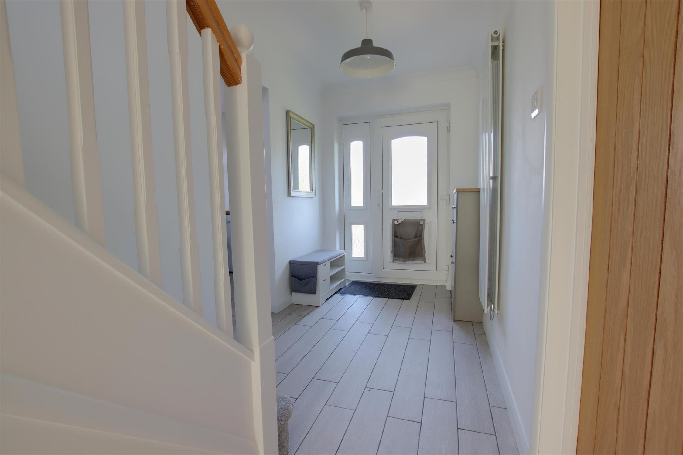 Double glazed obscure front door. Double glazed obscure window to the front aspect. Modern tall radiator. Staircase rising to the first floor with an understairs storage cupboard. Tiled flooring.