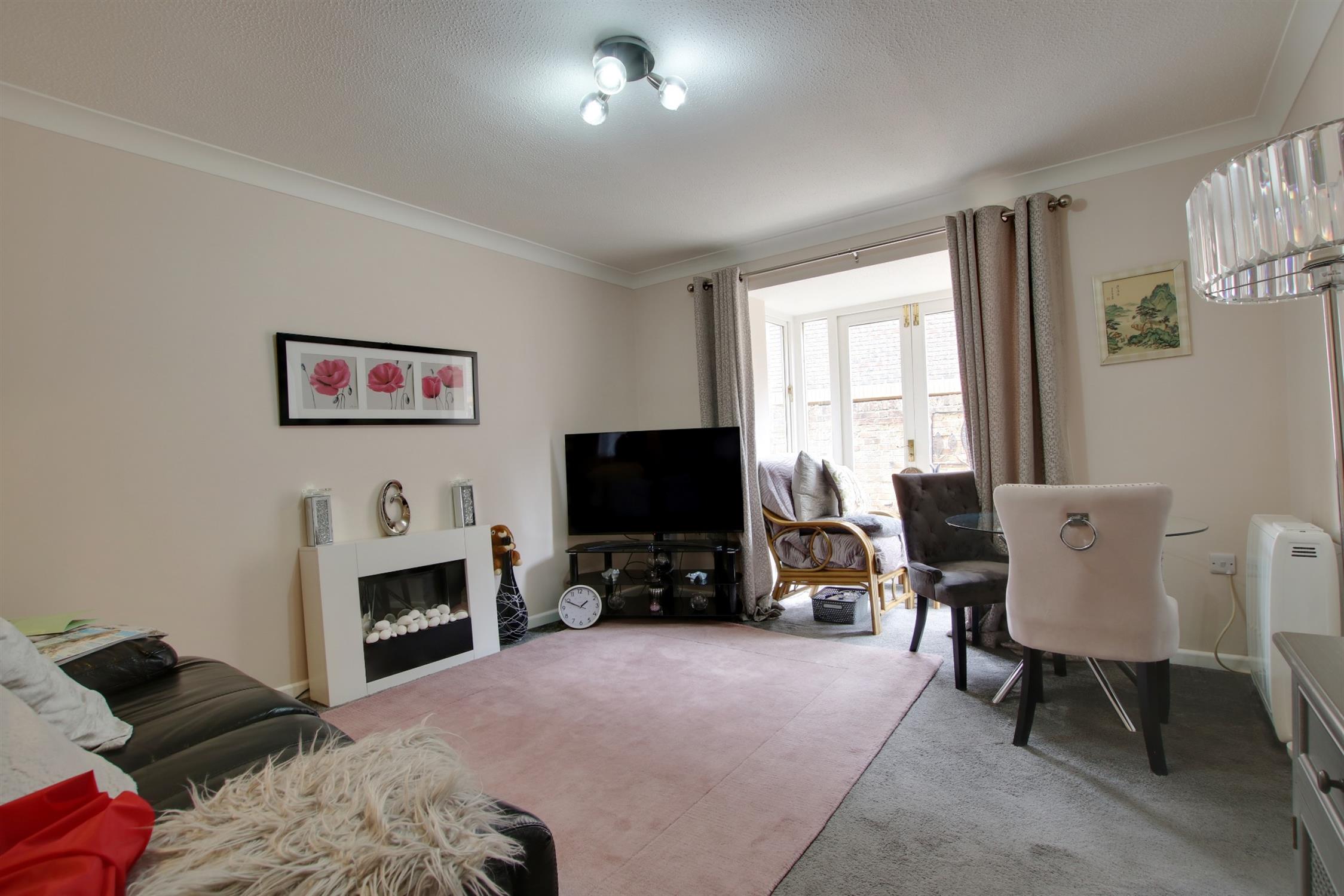 Double glazed bay window to rear elevation with double glazed French doors leading to the rear communal courtyard. Night storage heater. Coved and textured ceiling. Arched alcove with lighting.
