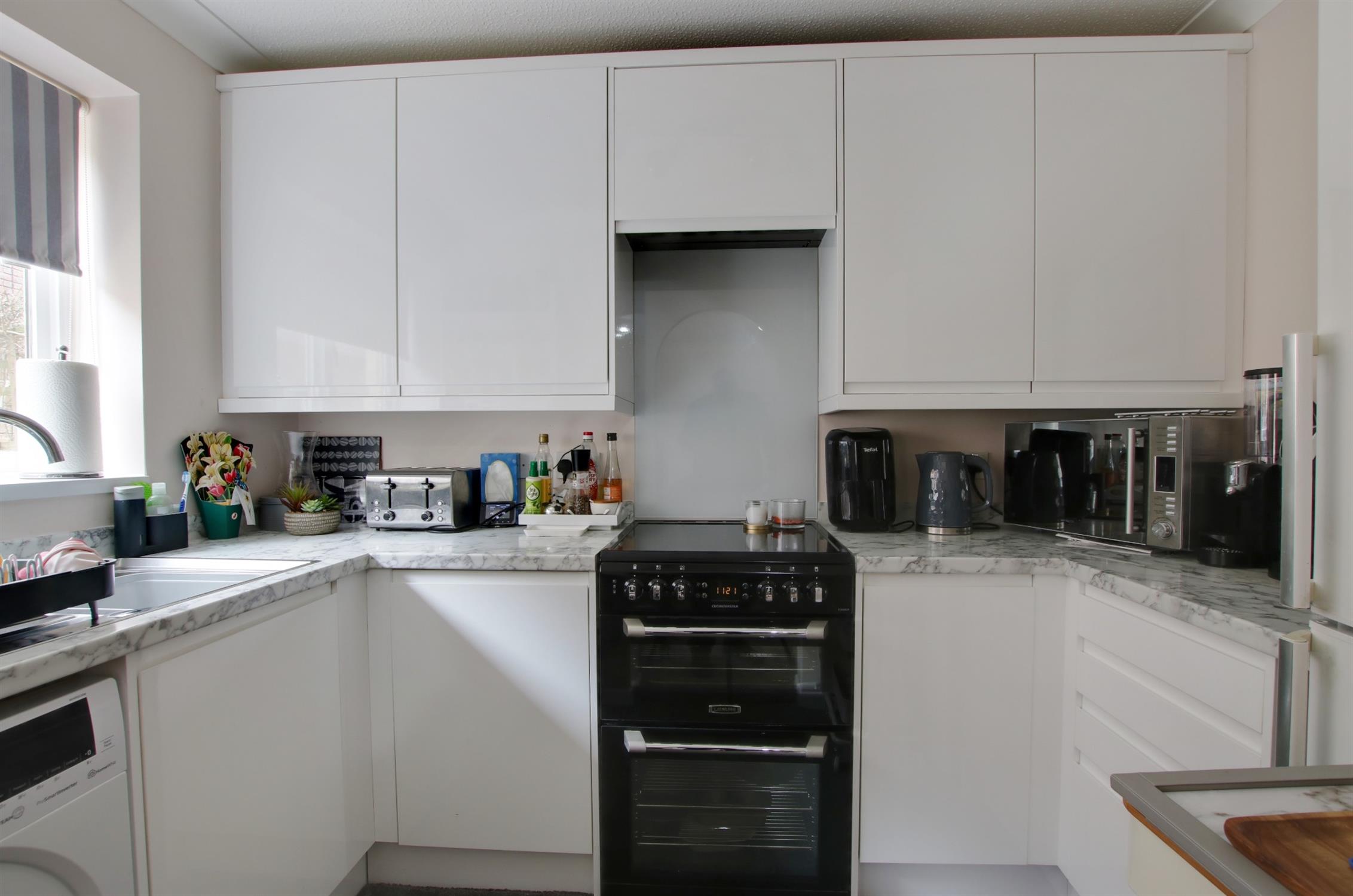 Double glazed window to rear elevation. Kitchen comprising stainless steel single drainer sink unit with cupboard under. Further range of wall and base level units with complementing work surface over. Plumbing for washing machine. Recess for fridge/freezer. Recess for electric oven with glass splashback and extractor hood over.