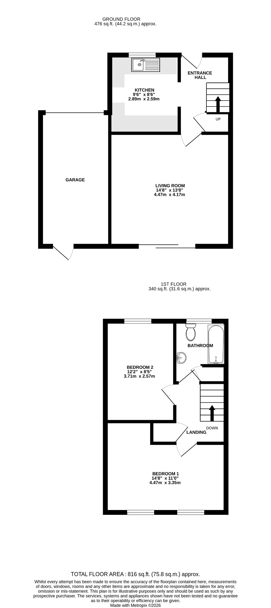 GARAGE: Accessible via up and over door with power and light and storage space to loft with double glazed door to rear garden.