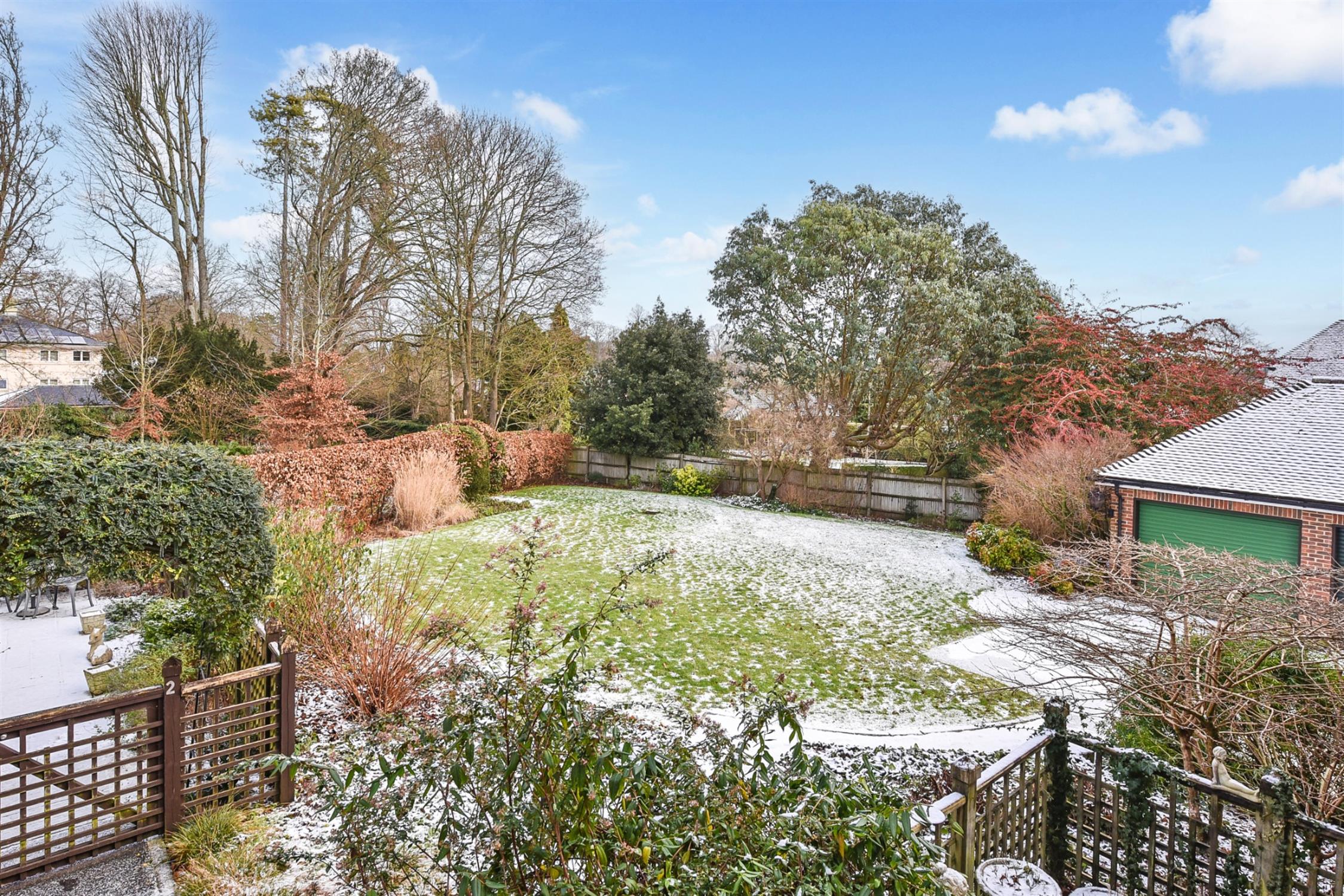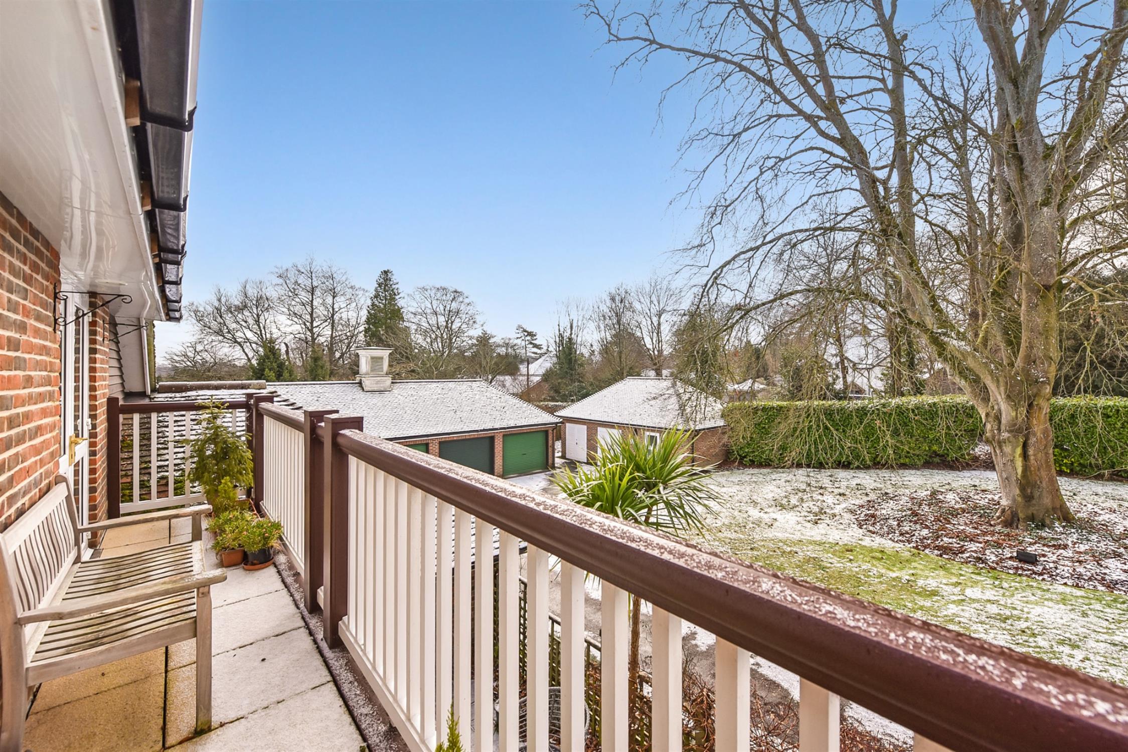 The unique position of this particular apartment within the development benefits from double-aspect views of the grounds, especially from the open-plan living areas, creating a bright and spacious feel, with French doors leading out to the balcony. The kitchen also opens directly onto the balcony and is fitted with a selection of floor-to-ceiling cupboards, fitted dishwasher, fridge freezer and space for utilities. The principal bedroom is spacious and features a built-in wardrobe and a sizeable en-suite bathroom including a bathtub and separate shower, while the second bedroom is complemented with a double built-in wardrobe. There is an additional guest bathroom offering a generously sized double shower. Lots of additional storage is available in the loft. Externally, the property offers both residents and visitor parking, along with a garage located in a nearby block offering eaves storage and an electric up-and-over door.