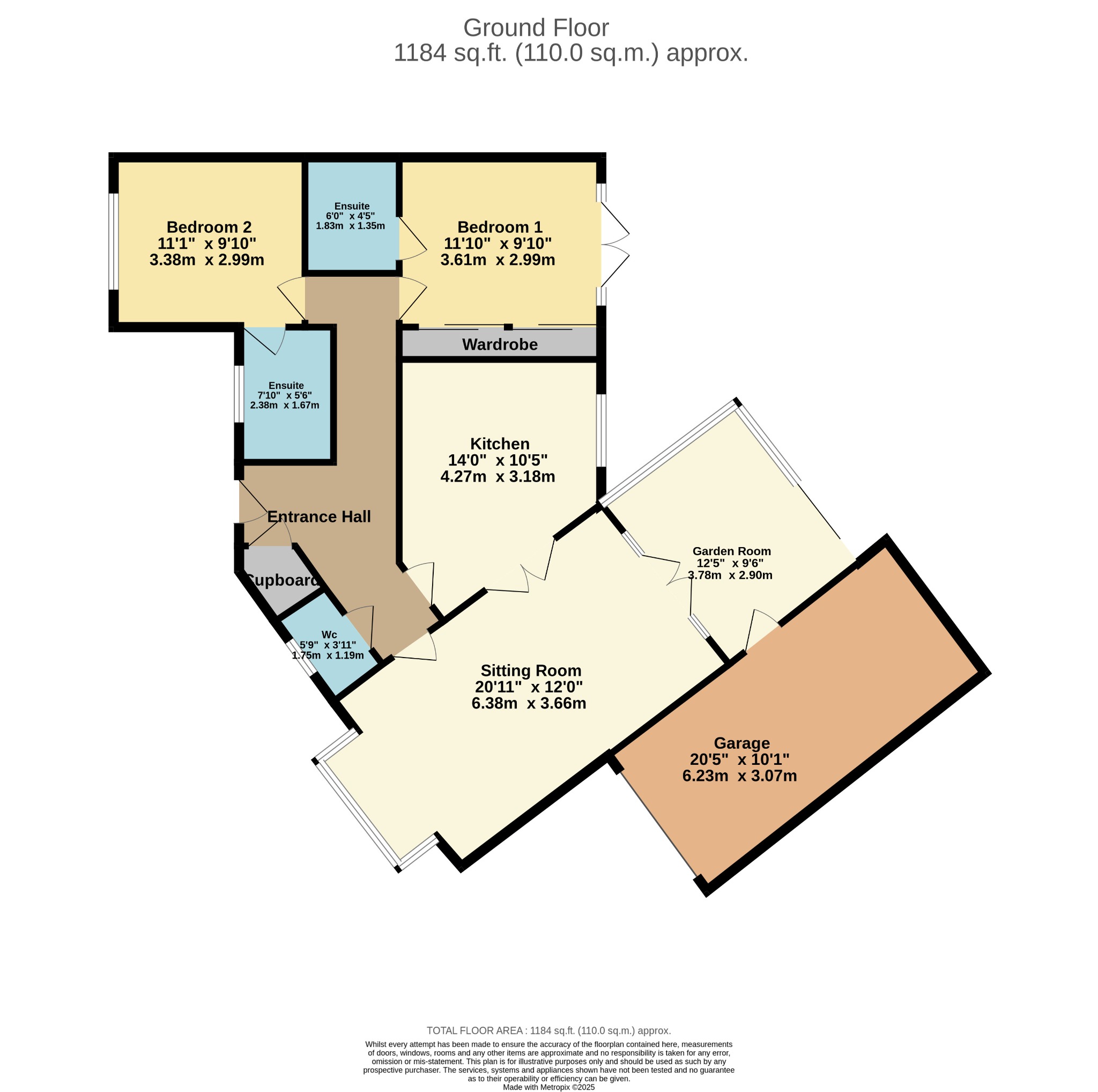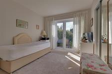 A range of mirrored fitted wardrobes. Radiator. French doors to the rear garden.