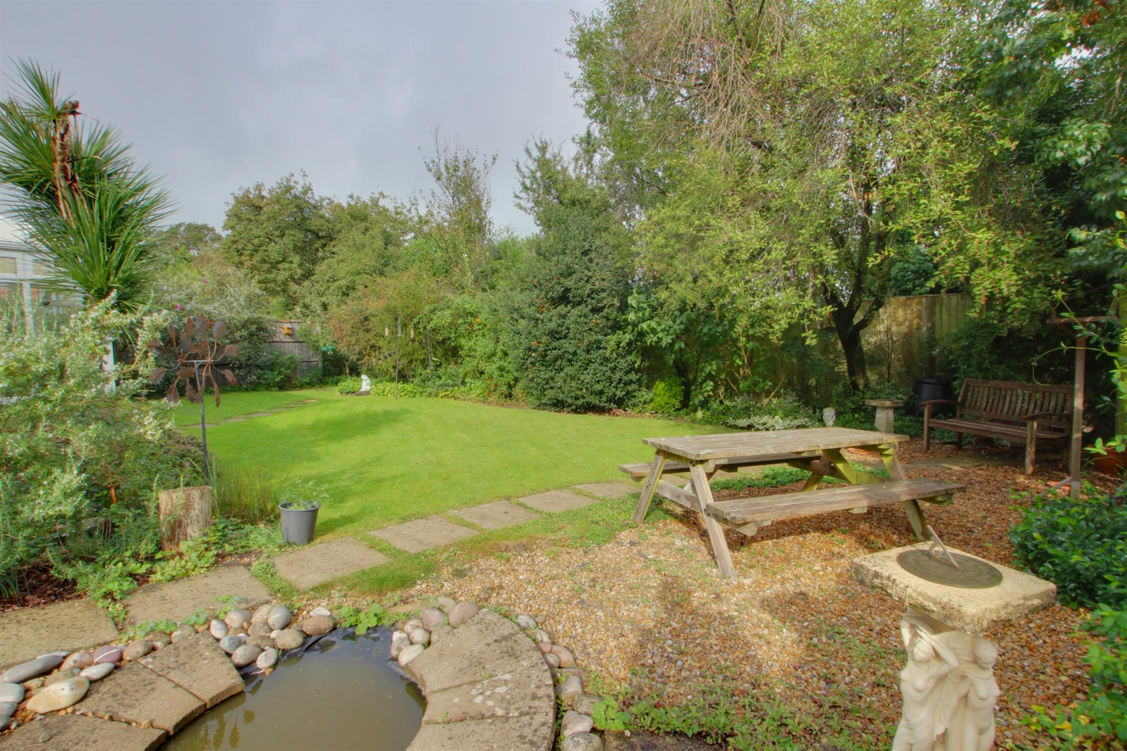 Outside there is a double garage that has access from front and rear, a good sized back garden with established planting, partially laid to lawn, with a patio area to the side of the building.