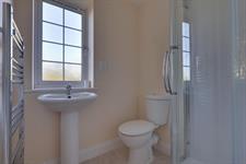Shower cubicle. WC. Ceramic sink. Heated towel rail. Frosted double glazed window.