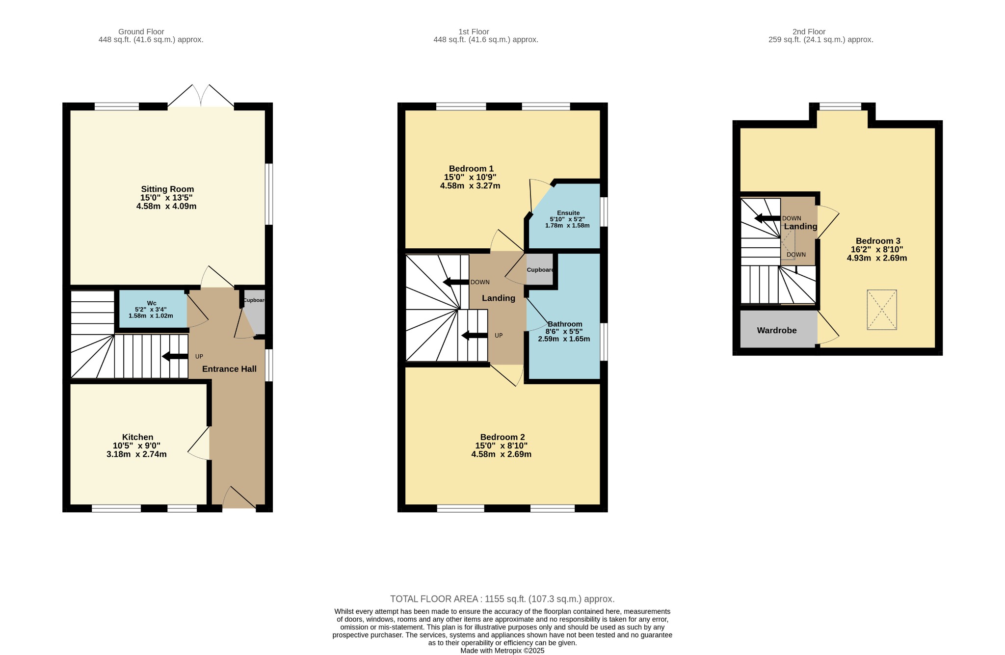 A beautifully presented, three bedroom semi-detached property that is being offered with no forward chain. The property is situated at the end of a cul-de-sac and enjoys a south facing rear garden. To the front of the property there are two allocated parking spaces. The entrance hall provides a storage cupboard and access to an attractive, modern kitchen. The sitting room has a wood burning stove and dual aspect windows drawing in plenty of natural light. From the first floor landing is access to the master bedroom with en-suite, family bathroom and a further double bedroom. The second floor provides the third double bedroom.