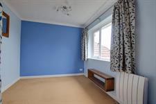 Double glazed window to the front aspect. Suite comprising; corner bath with shower over and screen. Low level WC. Wash hand basin. Heated towel rail. Part tiled walls.