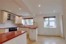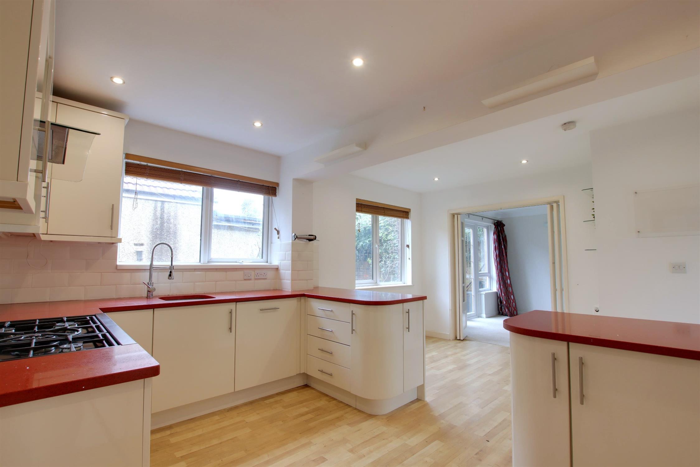 Two double glazed windows to the rear aspect. Smooth ceiling with inset spotlighting. Matching wall and base units with quartz worktops. Inset stainless steel sink. Tiled splashback. Space for cooker. Integral dishwasher and fridge/freezer. Radiator. Understairs storage cupboard.