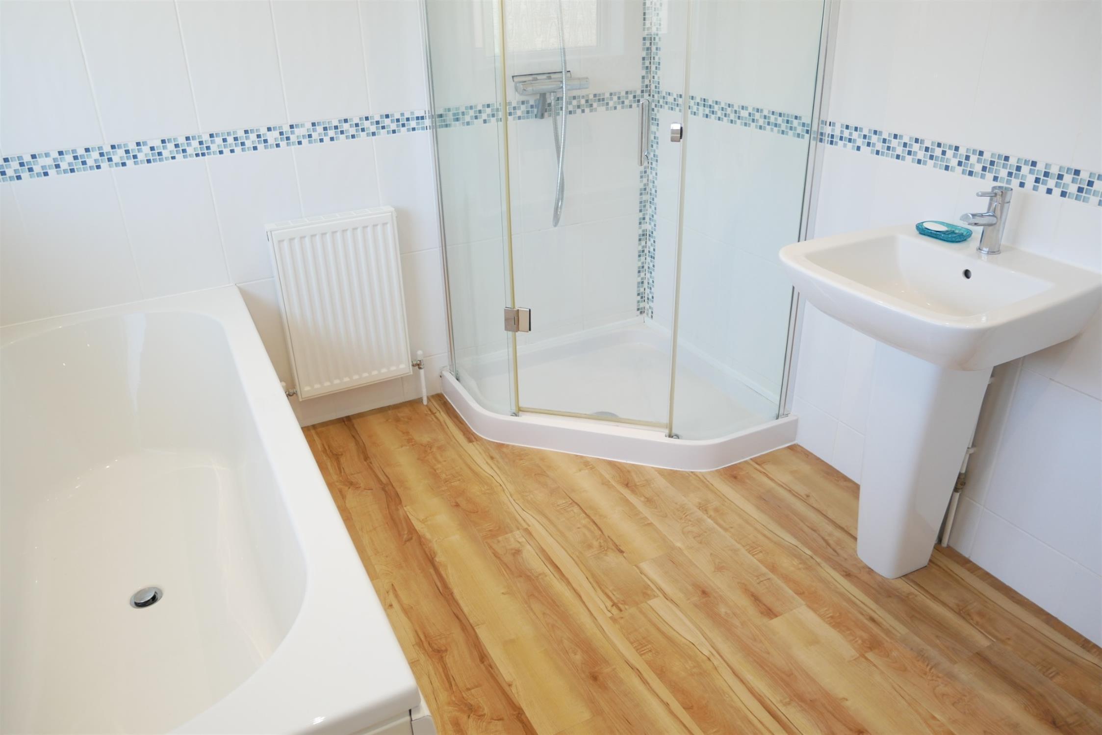 Modern larger than average bathroom, freestanding power shower and separate bath.