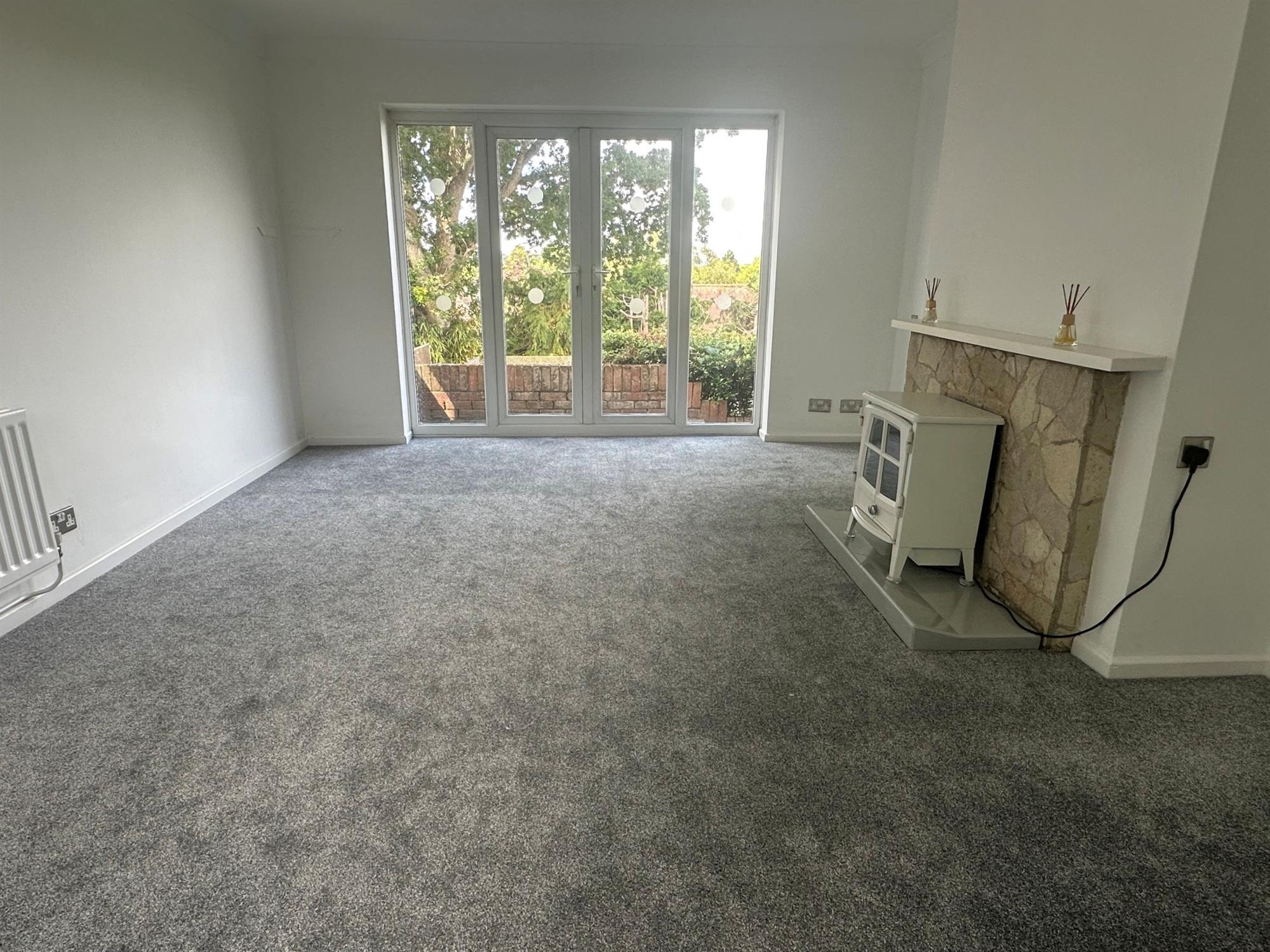 Window to front aspect. UPVC double glazed french doors with side panels to rear garden with views towards Southampton water. Feature fireplace with electric fire fitted. Radiator.