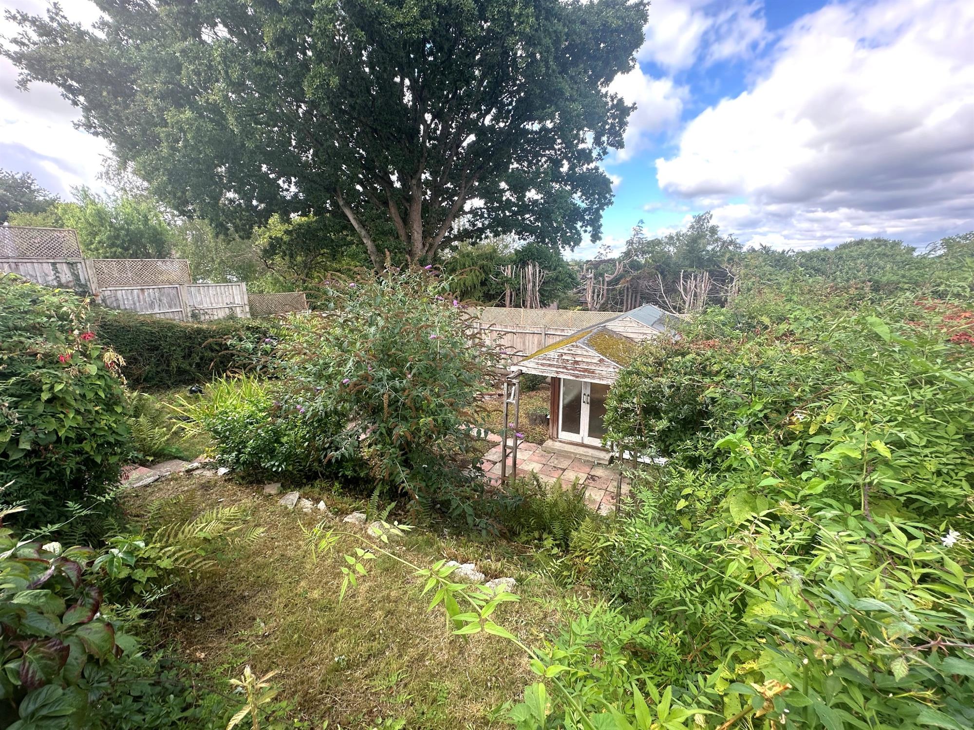 Elevated with views towards Southern water from patio. Fenced to boundaries. Steps down to further patio area. Timber workshop. Numerous shrubs, trees and bushes.