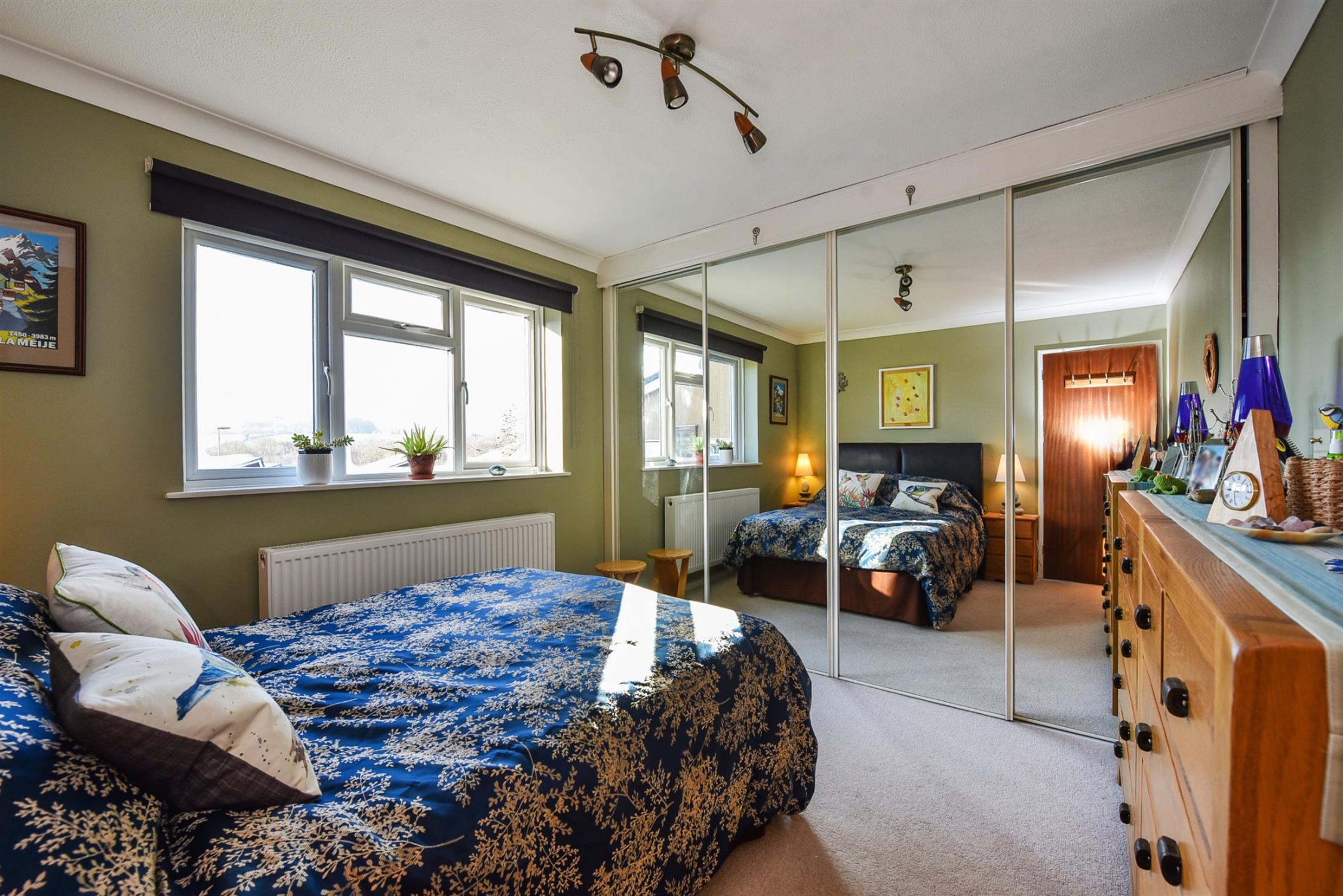 Bank of sliding mirrored wardrobes. Glorious far-reaching views.