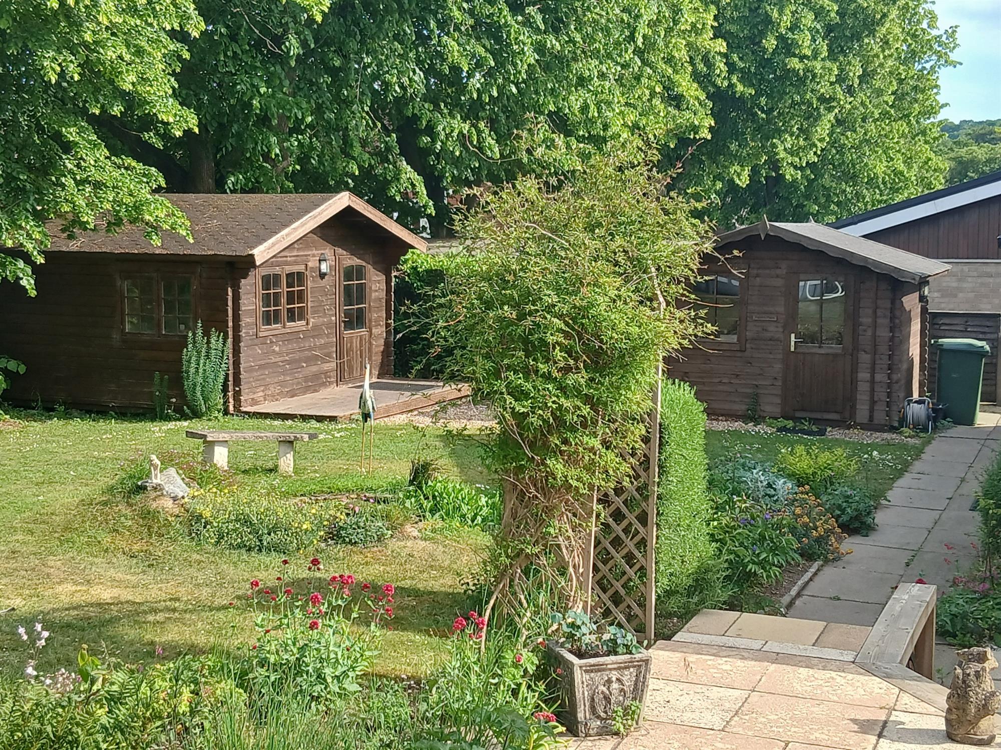 Previously used as an office, this cabin is now a garden shed.