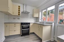 Range of fitted floor and wall units with contrasting work surfaces and complimentary tiling to walls. Inset stainless steel sink unit. Slot in gas cooker with extractor hood over. Plumbing for automatic washing machine. Space for upright fridge/freezer. Radiator. Double glazed window and door to rear garden.