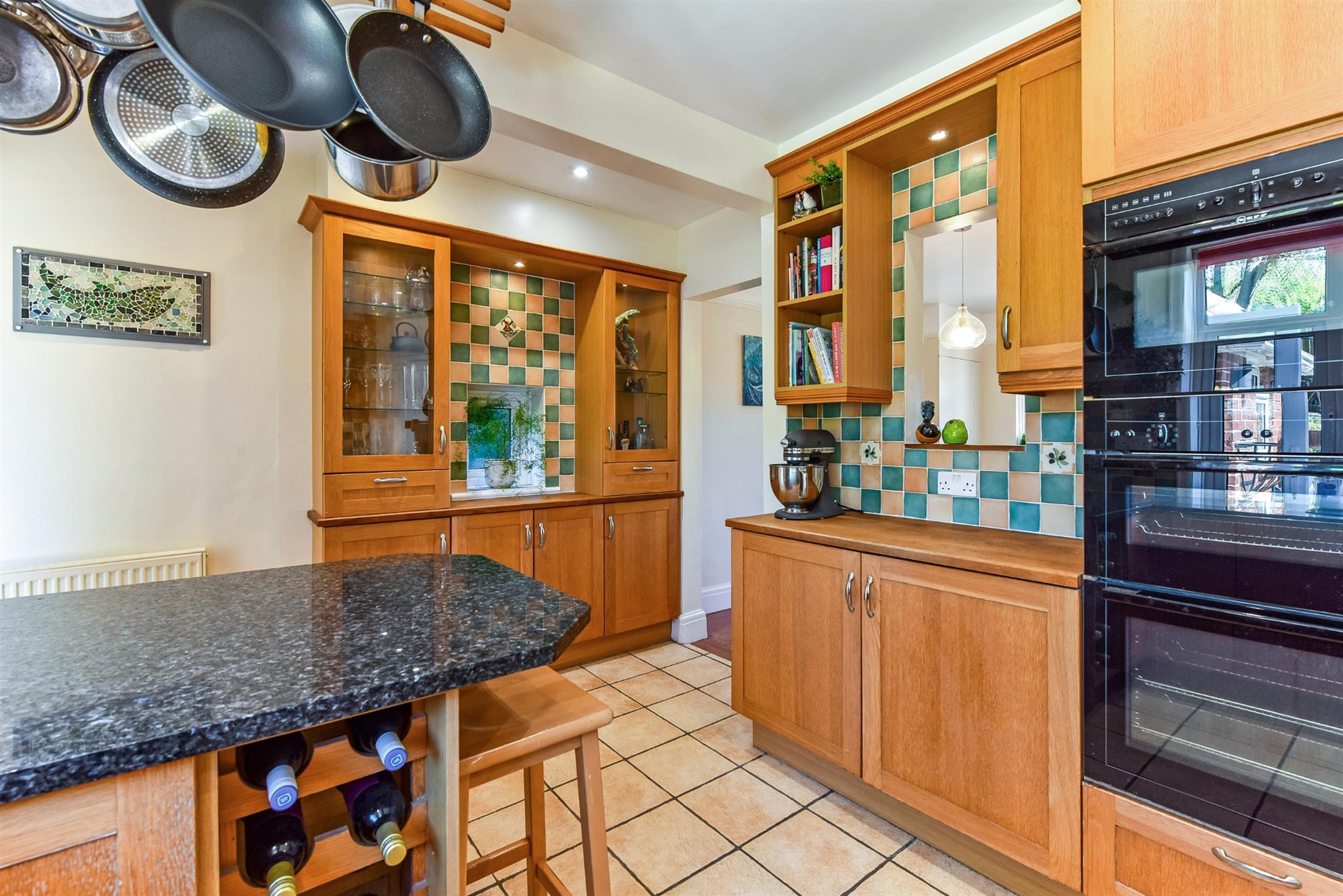 Fitted with a stylish range of units comprising, base cupboard, drawer and wall units with work-surfaces over. Sink unit with mixer tap over. Oven housing with Neff built in triple oven. De Dietrich gas hob with extractor over. Integrated low-level fridge and Bosch dishwasher. Tiled splashbacks. Breakfast bar. Inset lighting and tiled floor. Radiator. Double glazed window to the rear and side aspects. Door to: