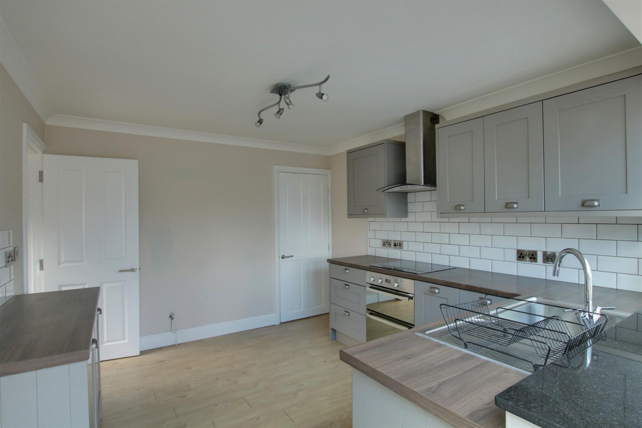 KITCHEN: Fitted with a range of stylish grey shaker style units, with base, cupboard, drawer and wall units. Built-in Hotpoint double oven with Samsung electric hob over and extractor canopy. Single drainer sink unit with mixer tap over.