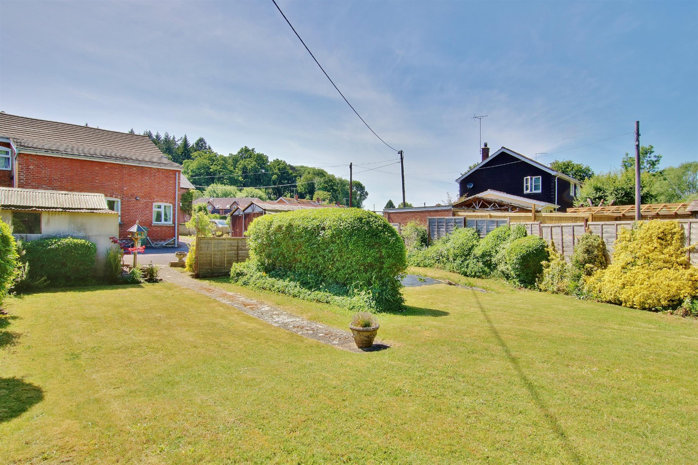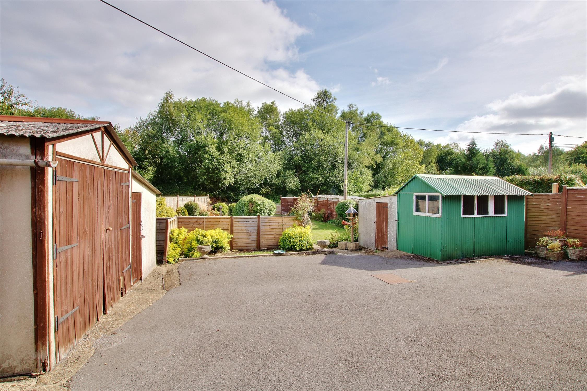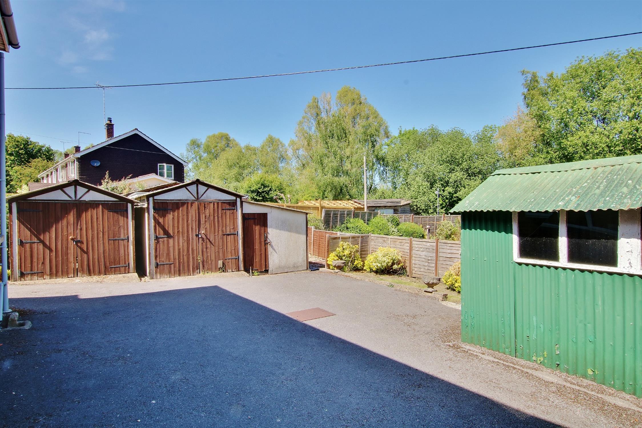 There is a driveway to the side which extends behind the house providing off-road parking for several vehicles and leads to the two garages and outbuildings. Beyond this area is a good size garden mainly laid to lawn enclosed by panel fencing with flower and shrub borders. There is ample space to the side of the property for further extensions if required subject, of course, to the usual planning consent.