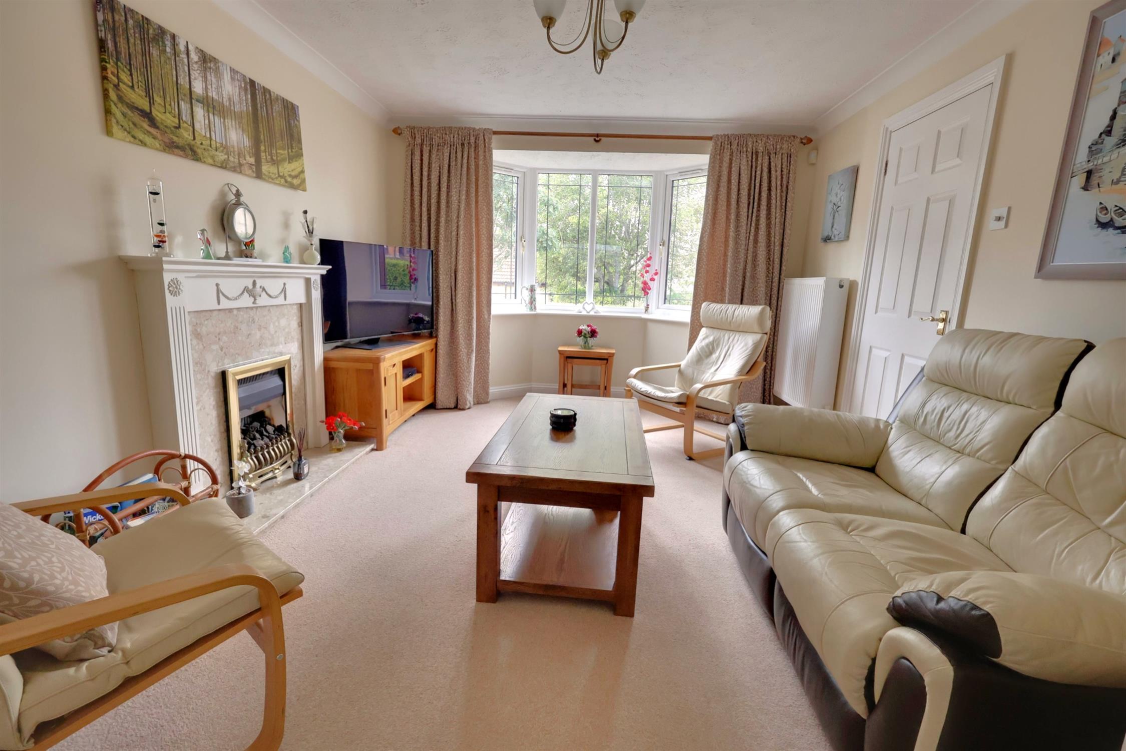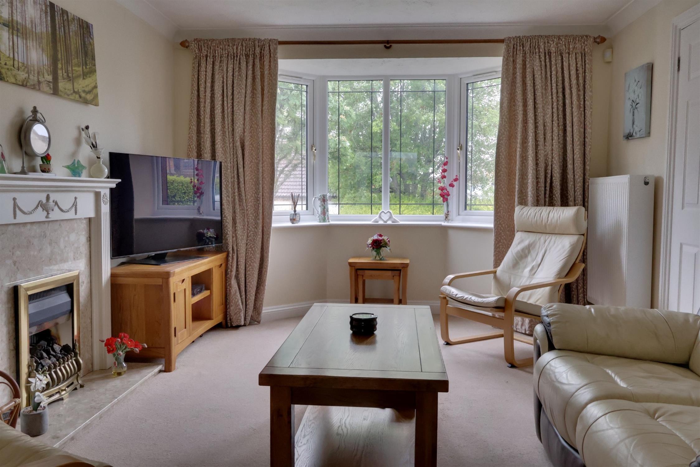 Double glazed bay window to front. Fireplace with living flame gas fire. Radiator. Glazed double doors to dining room.