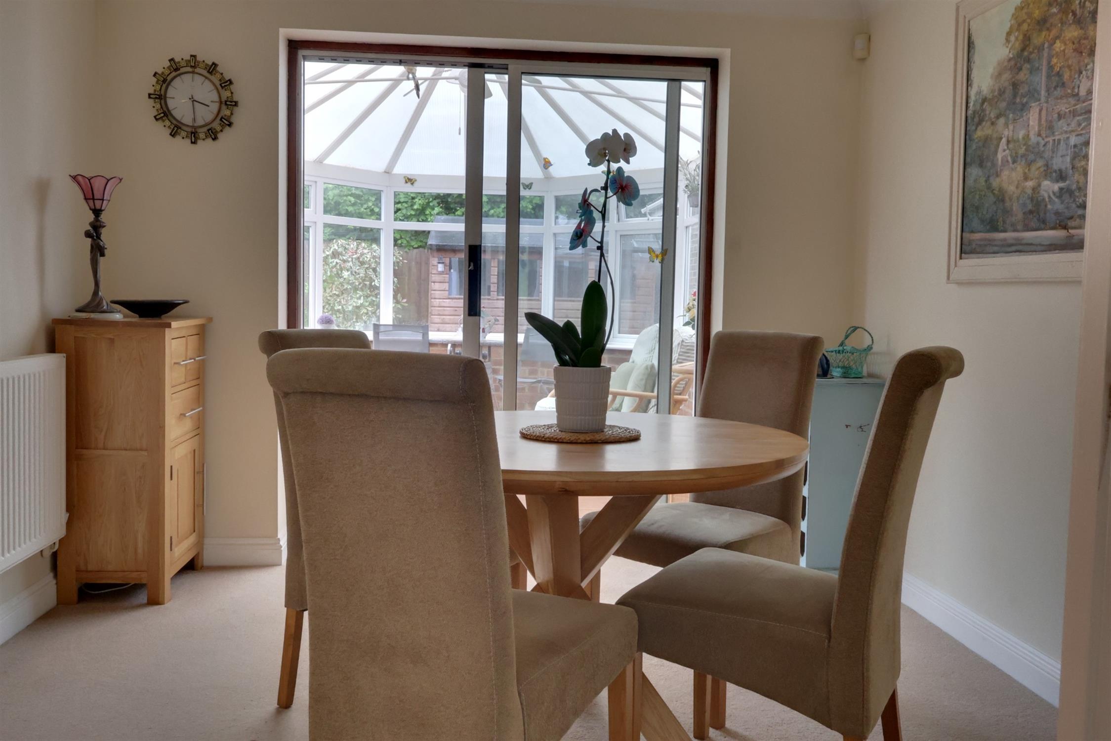Victorian style conservatory, brick and double glazed Upvc construction beneath vaulted roof. Double doors opening to rear garden.