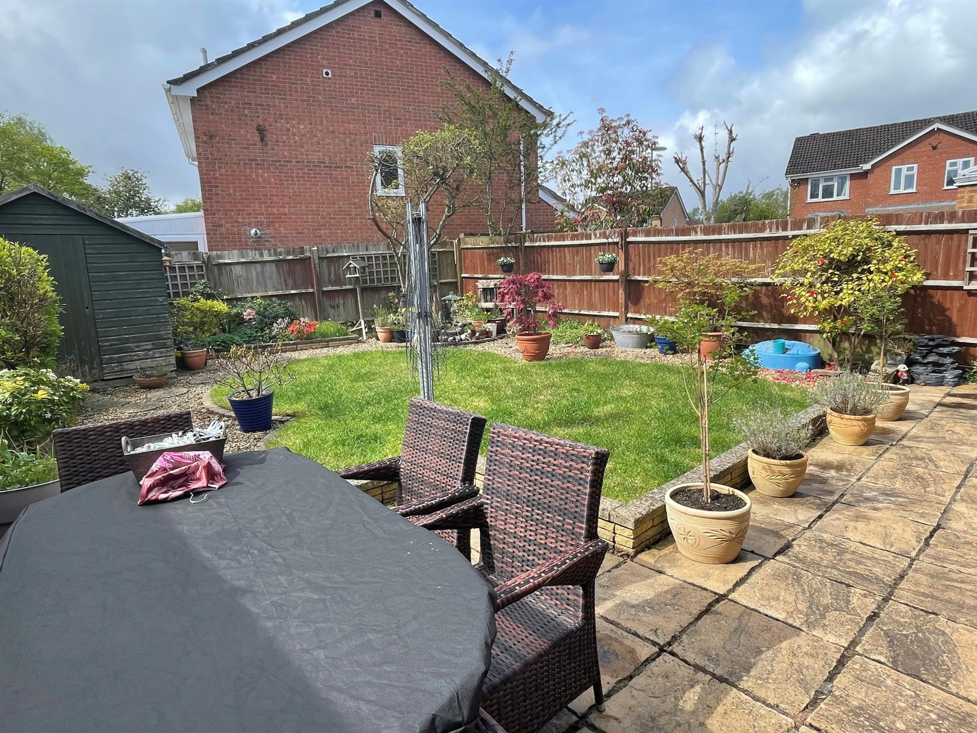 Fenced to boundaries. Paved patio. Shaped lawn. Mature shrubs, trees and bushes. Outside tap. Pedestrian side access.