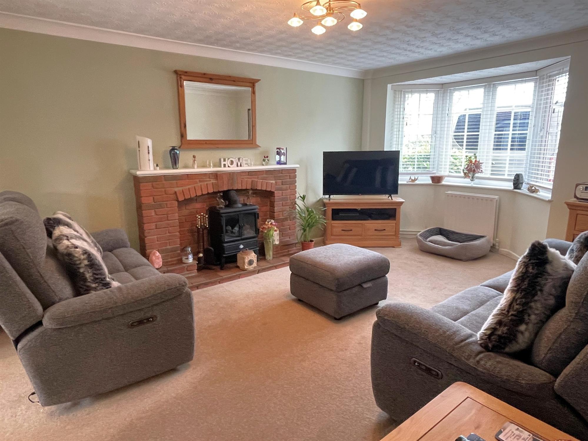 Box bay window to front. Feature fireplace with electric fire. Television point. Radiator. Opening into: