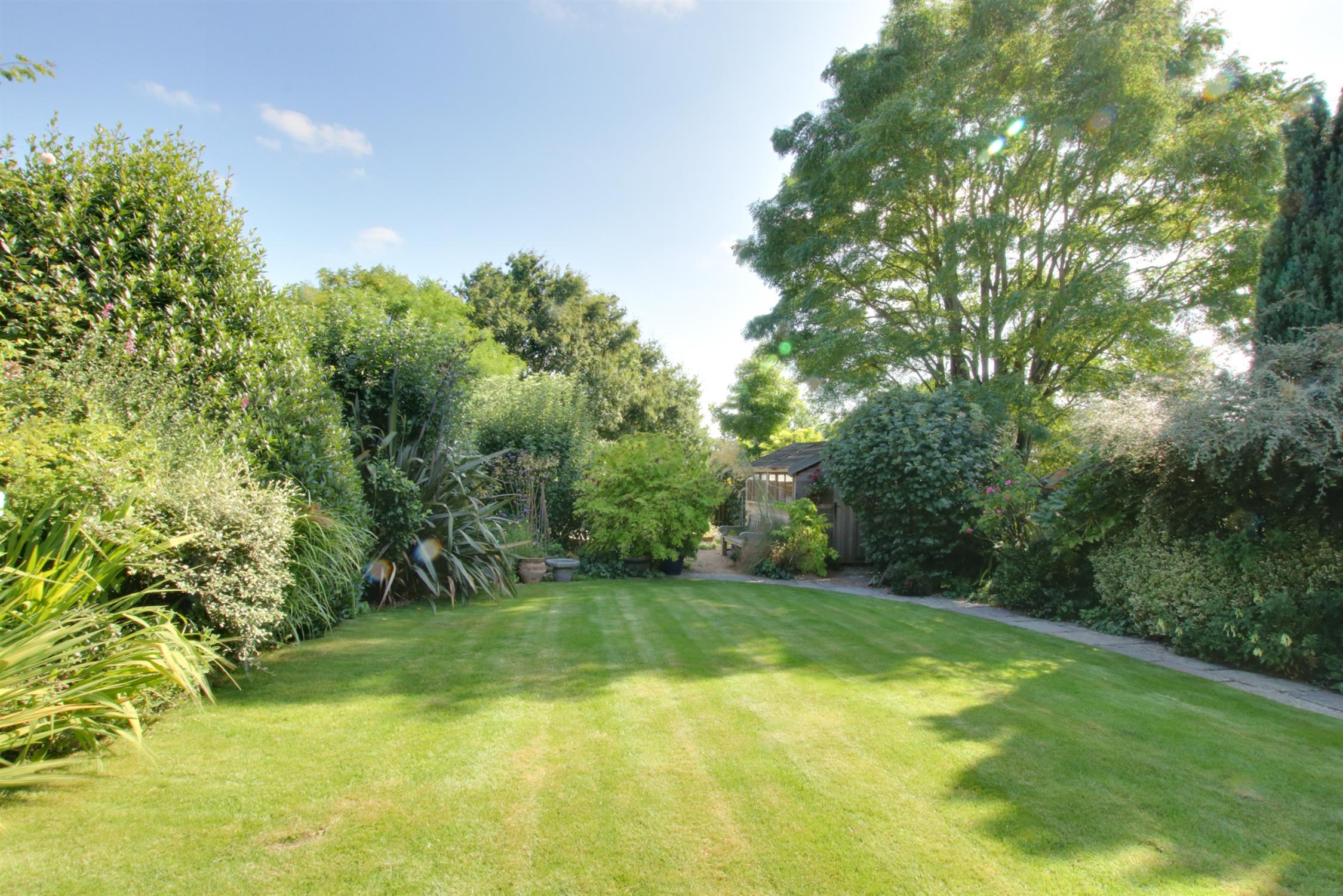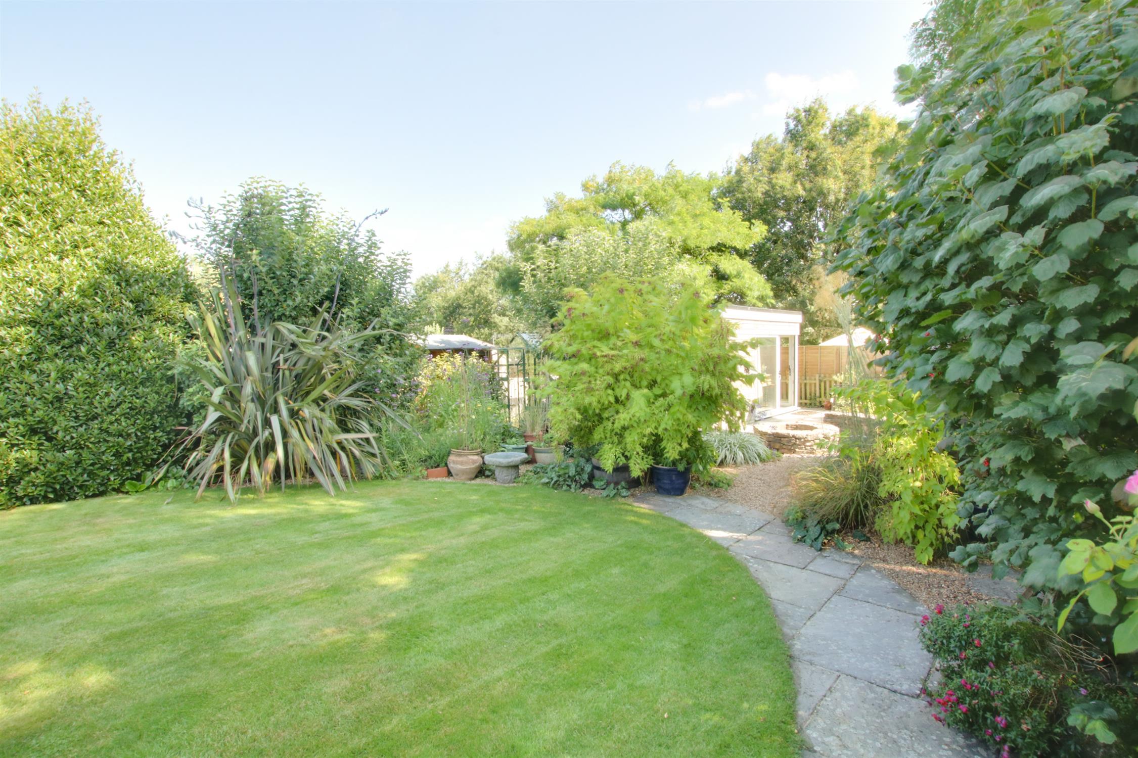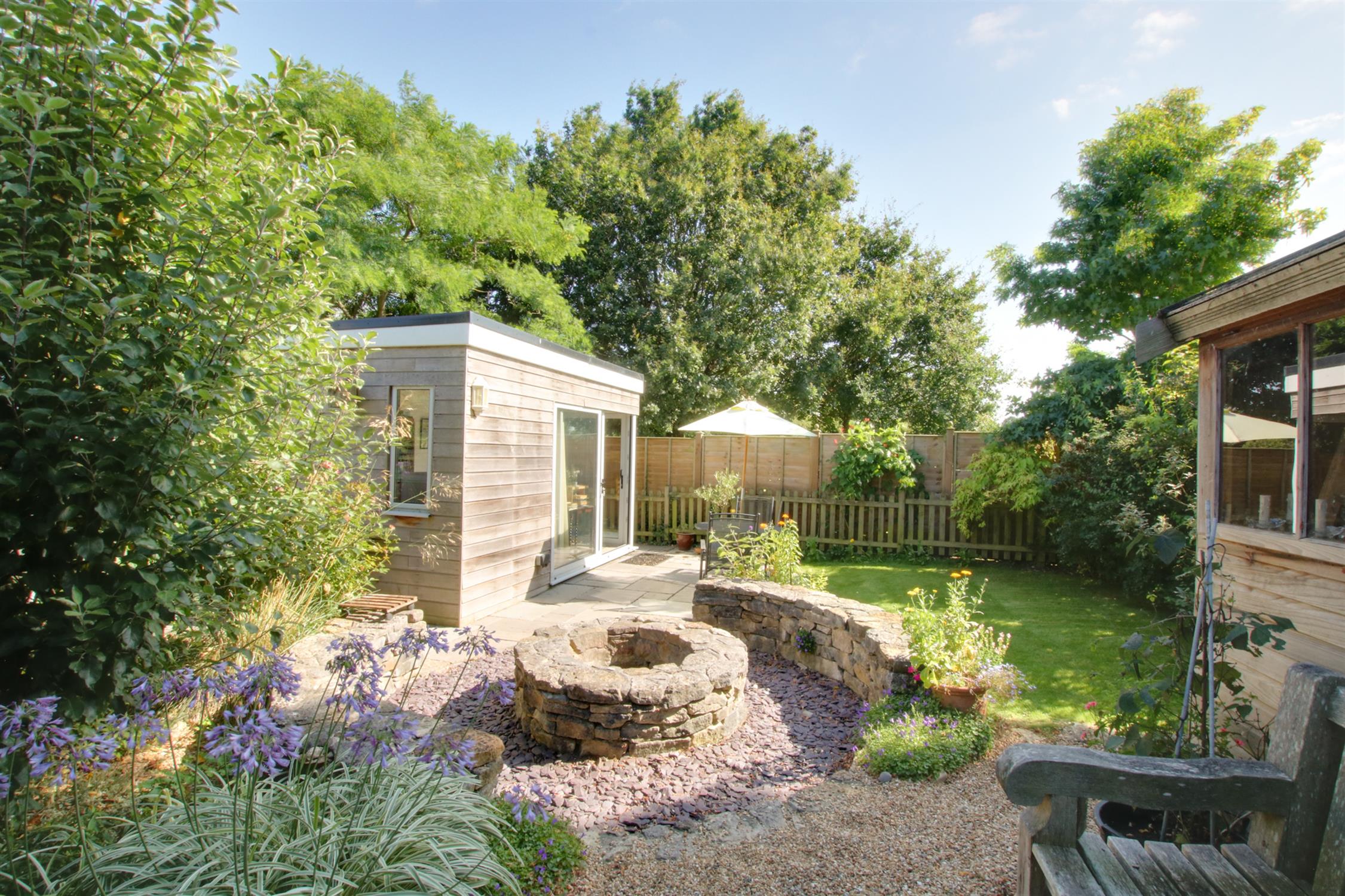 The front garden is a great size, providing for plenty of off road parking and turning. There is side access to the rear garden. The attached GARAGE, has double opening doors, power, light and a personal door leading to the rear garden. The rear garden is beautifully landscaped and planted with mature borders and cottage style planting. There is a large terrace area to the rear of the property. The lawned garden and pathway lead to the lower end of the garden which is attractively screened and planted with a workshop/storage shed, greenhouse and a landscaped Pow-Wow circle around a stone fire pit. There is a super DETACHED HOME OFFICE/GARDEN ROOM, which has two sets of double glazed sliding patio doors, tiled floor, electric radiators, internet and inset lighting.