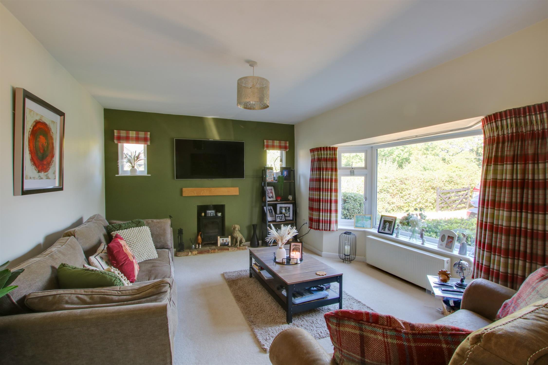Well proportioned room with an attractive double glazed bay window overlooking the front aspect and two double glazed windows to the side elevation. Fireplace with fitted wood burning stove. Radiator.