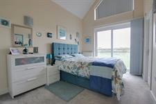 Double glazed sliding patio doors providing uninterrupted views of Fareham creek. The bedroom has a 16' high vaulted ceiling and a feature double glazed high level triangular window providing ample natural light. Built-in wardrobes. Radiator. Wall lights points. Door to: