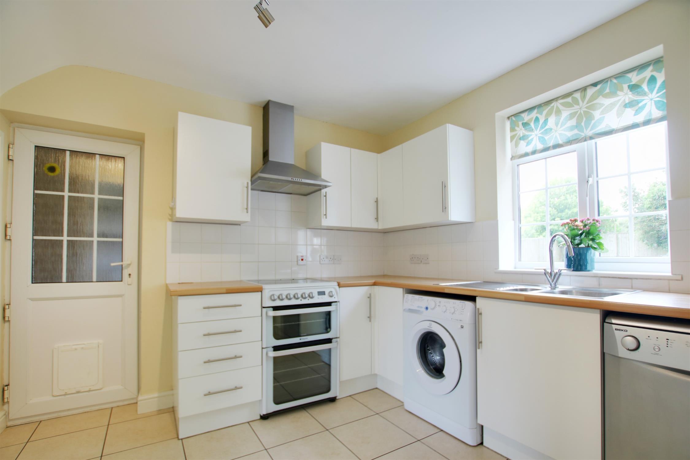 Upon entry, there is a spacious central hall that leads through to the kitchen and living room, as well as stairs that rise to the first floor and under stair storage. The double aspect living room is a good size at 19'7ft and offers space for both lounge and dining furniture. The room further benefits from a wood burner. The kitchen is fitted with a range of eye and low-level units with space for white goods and further benefits from a built in pantry. From the kitchen there is access to a covered corridor that leads to the front of the property, the store room, workshop, and the rear garden.
