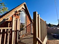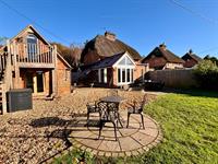 To the front of the property, there is a picket-fenced front garden with mature planting. A large gravel driveway for ample parking leads down the side of the property. There is rear access to the rear garden and a covered porch to the front door. Electric car charging point.