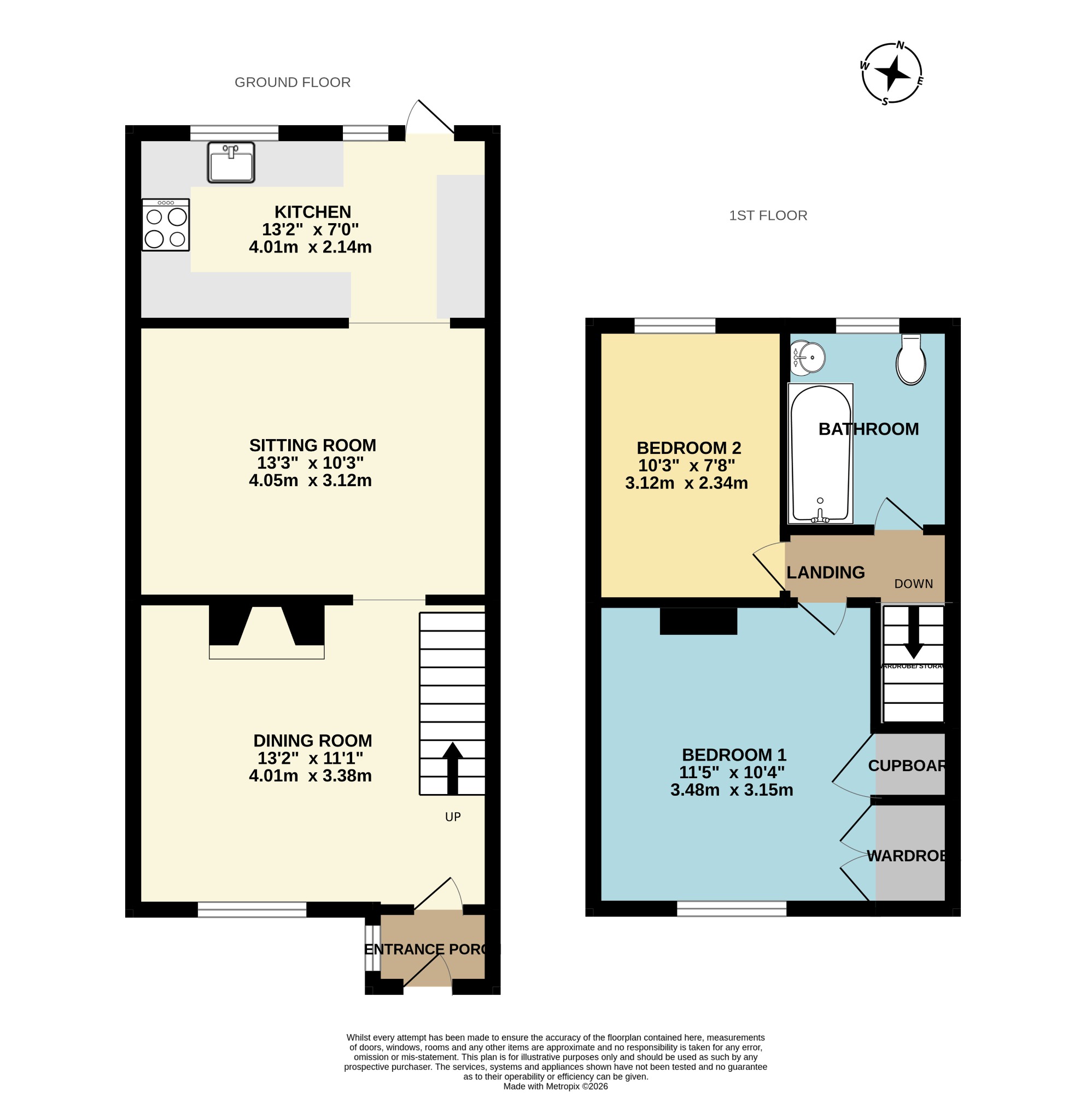 A well presented two double bedroom terrace character cottage, situated in a rural location between Lovedean and Denmead. The property is approached via a no-through lane which is surrounded by paddocks and fields, and comprises a blend of original features with modern updates. Further accommodation includes, an enclosed porch, a sitting room with log burner, a dining room with open fire, a fitted kitchen, an upstairs modern bathroom suite with underfloor heating, generous enclosed front and rear gardens, off-street parking and a garage.
