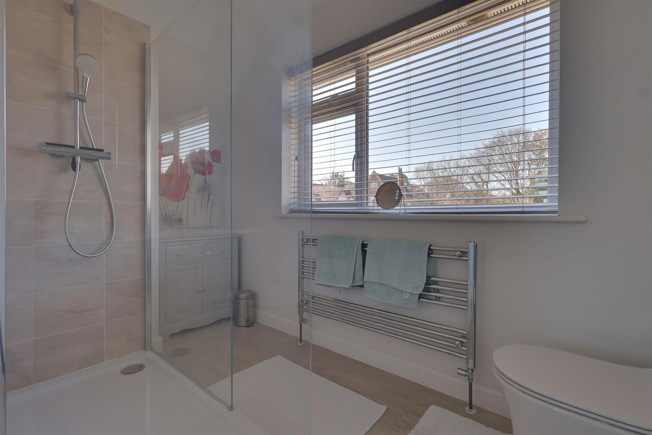 Walk-in shower unit. WC. Ceramic sink with cupboard under. Heated towel rail. Extractor fan. Double glazed window.