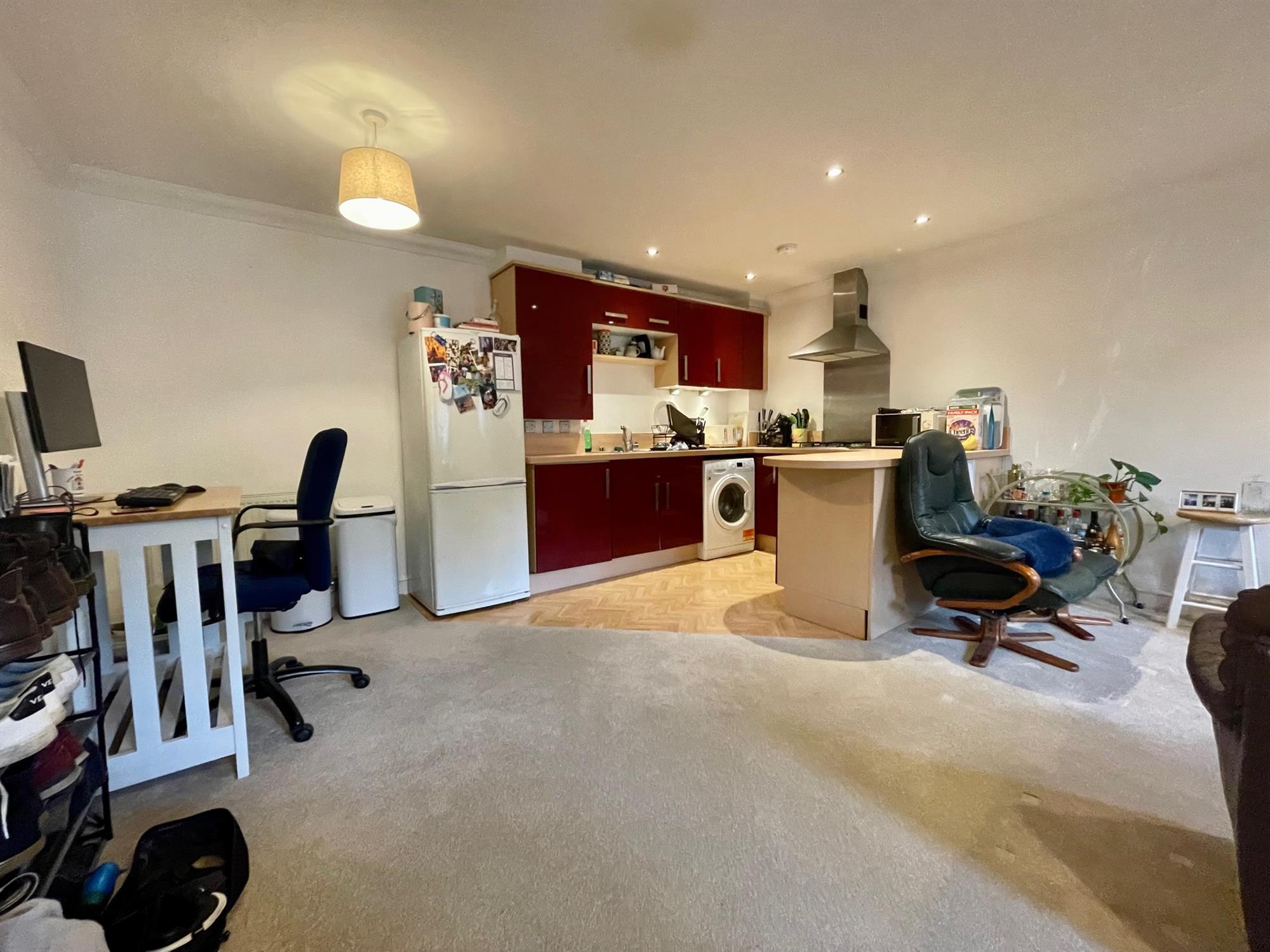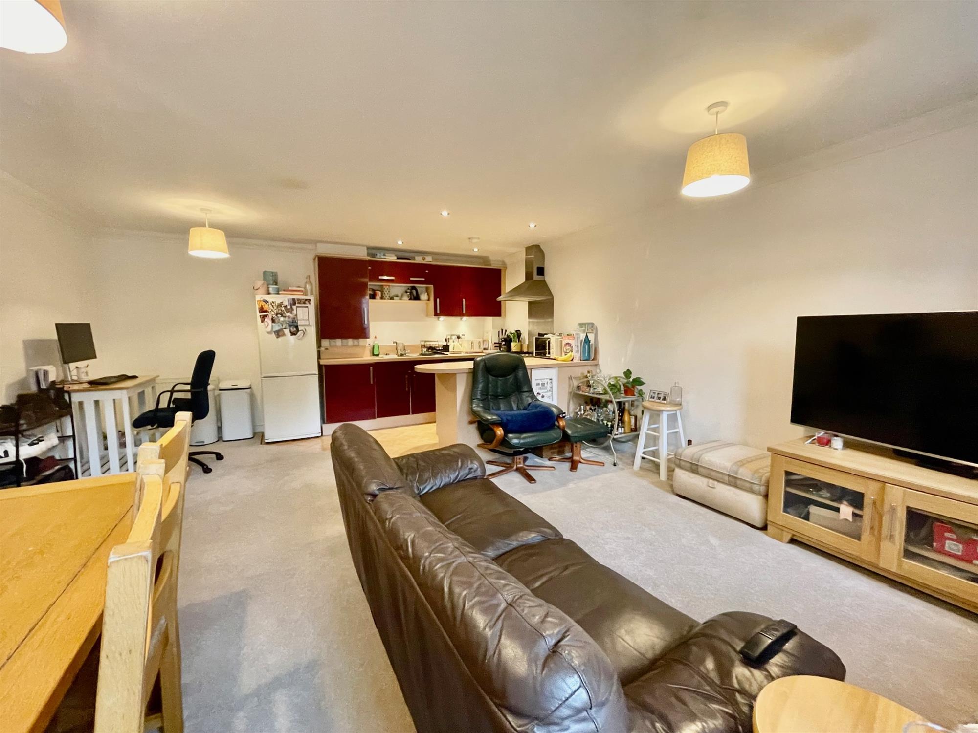 Upon entry to the property, there is a spacious central hall leading through to all accommodation. The kitchen/living room is open-plan and a terrific size, spanning across 21'5ft. The kitchen is fitted with a range of eye and low-level gloss units with space for whitegoods, and the living room offers ample space for both lounge and dining furniture. The bedroom is a large double with a dual aspect that allows plenty of natural light into the space. The room further benefits from a built-in storage cupboard with double doors. The bathroom is a white suite and is fitted with shower over bath, toilet and handbasin, and there is also a further built-in cupboard in the hall.