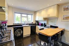Fitted with a range of wall and base units with granite worksurfaces over, space for gas range cooker with extractor hood over, spaces for washing machine, dishwasher and fridge/freezer, inset butler-style sink, front aspect double glazed window, breakfast bar, tiled flooring, side aspect double glazed door.