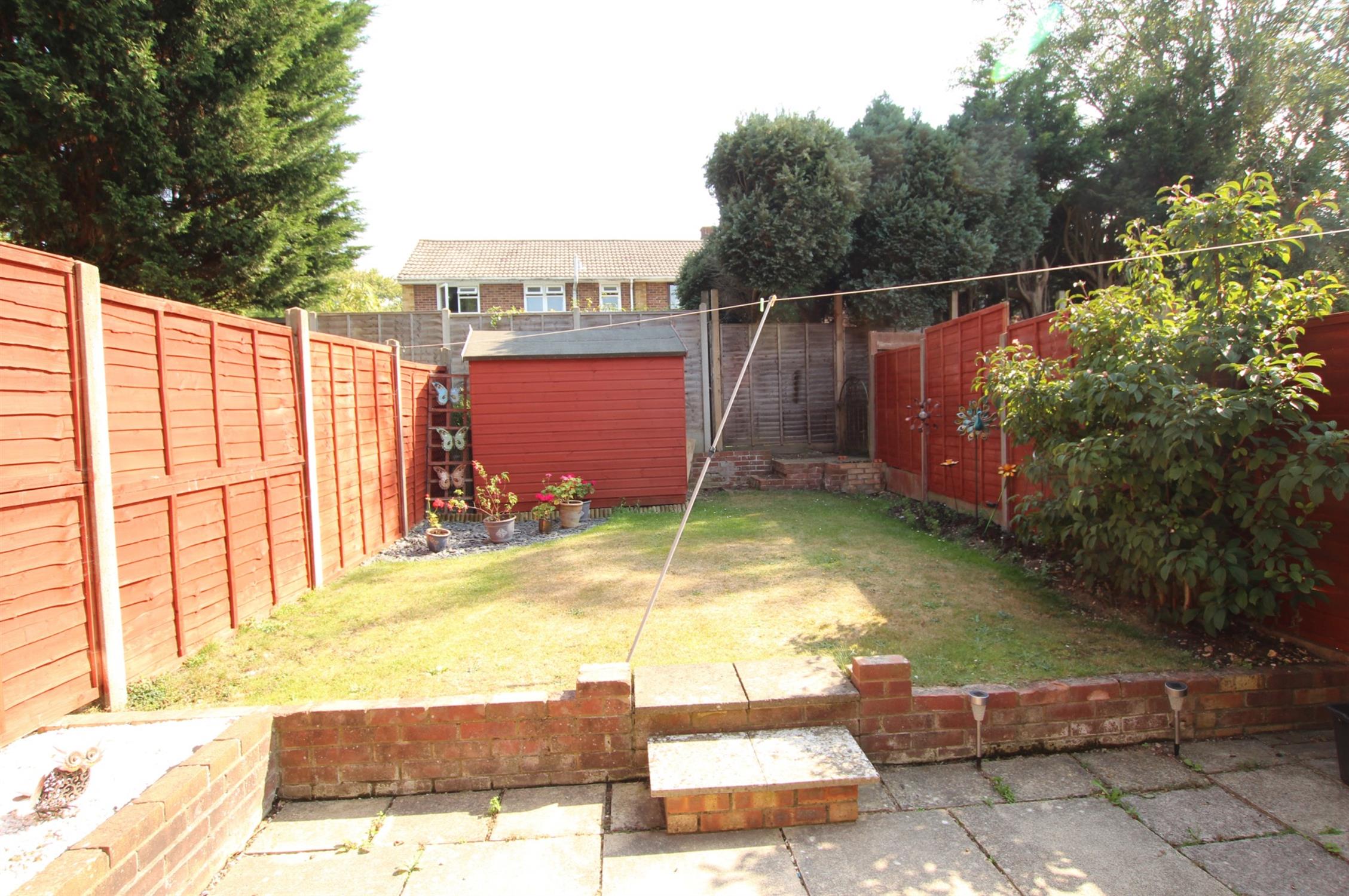 Fenced to boundaries. Lawn area. Paved patio. Timber garden shed. Pedestrian side access to the rear.