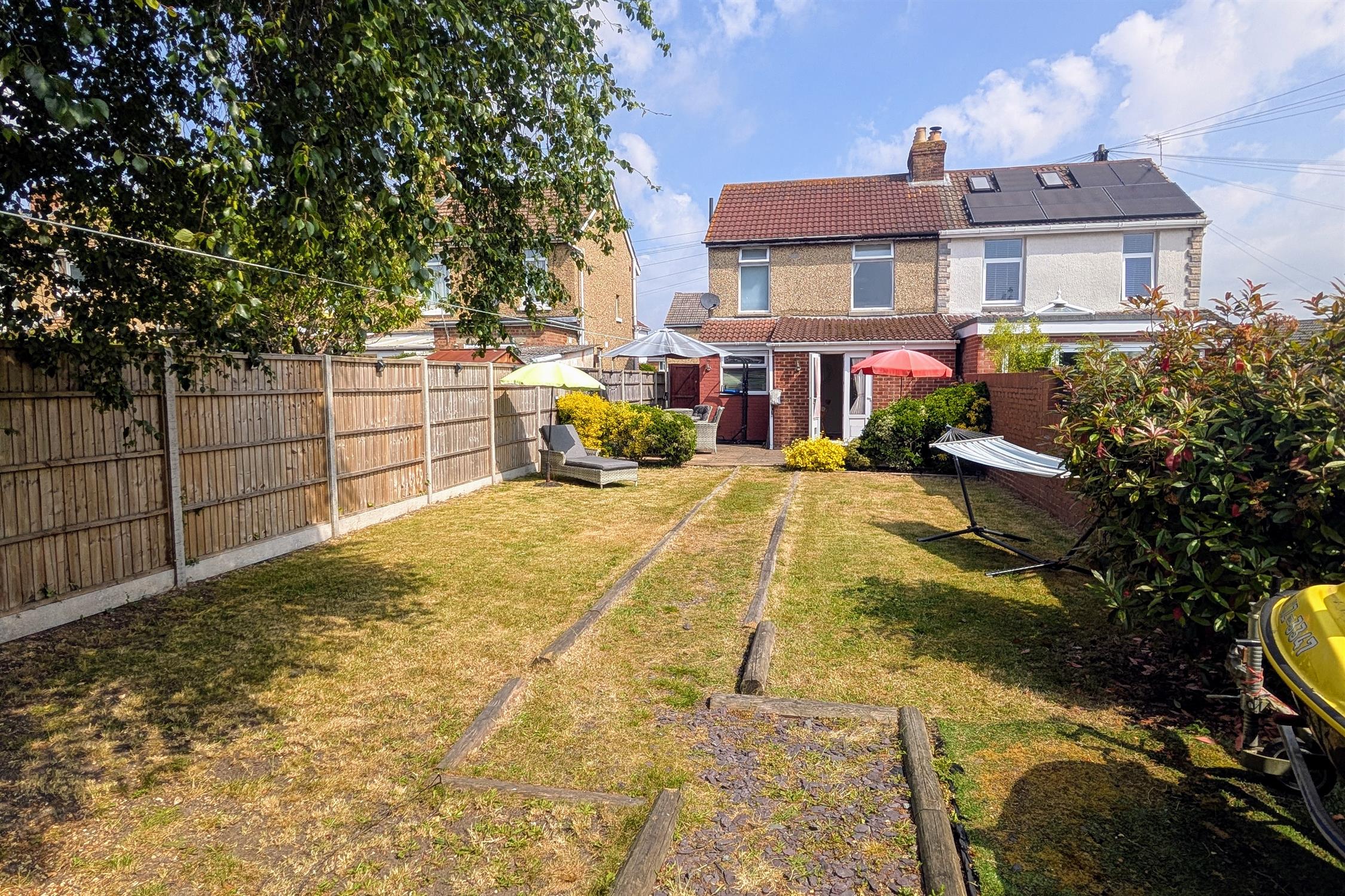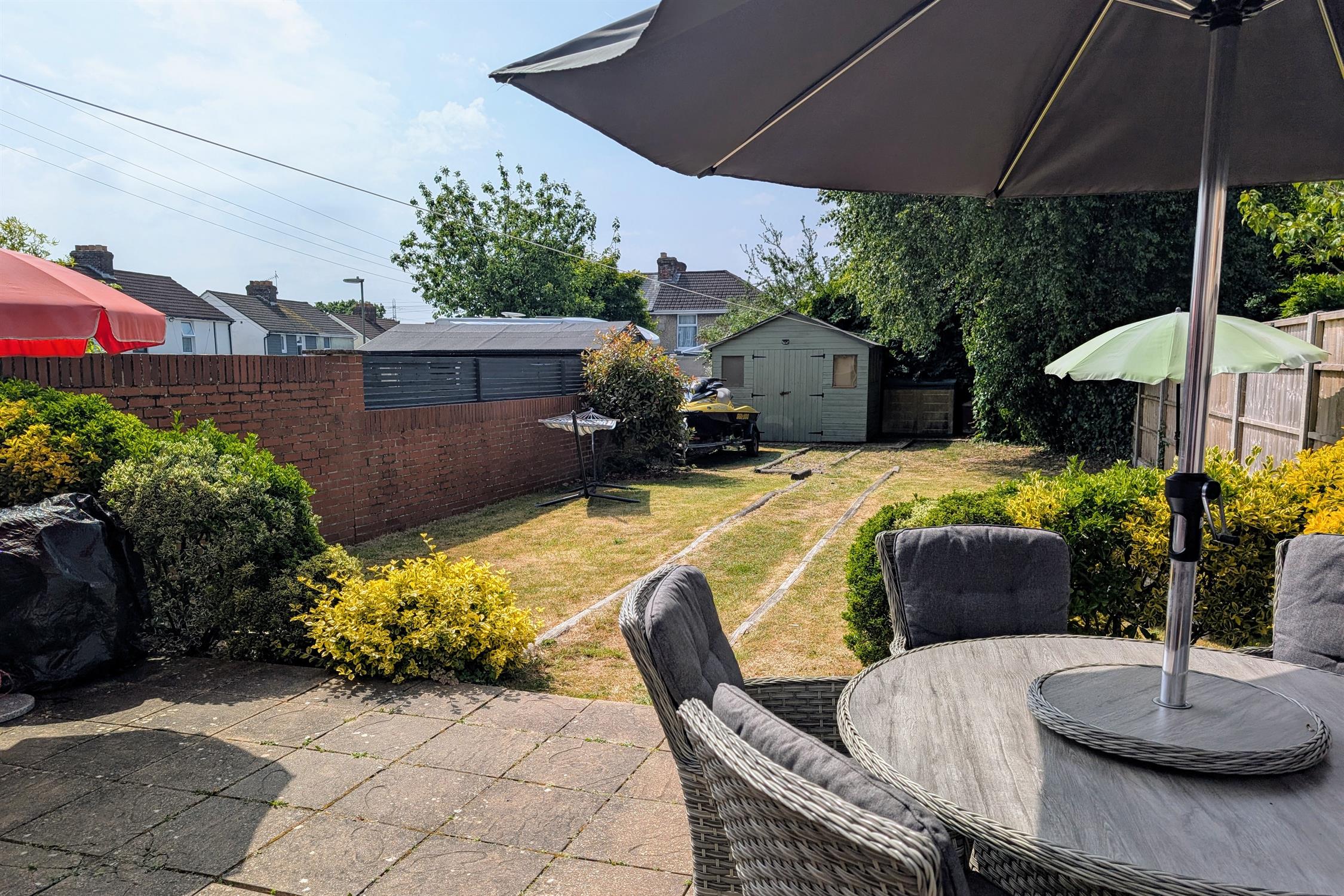 There rear garden has a patio area adjacent to the house. The majority of the garden can be found mainly laid to lawn. The garden is fence and brick wall enclosed. Has gated side pedestrian access and a garden shed located towards the end of the garden.